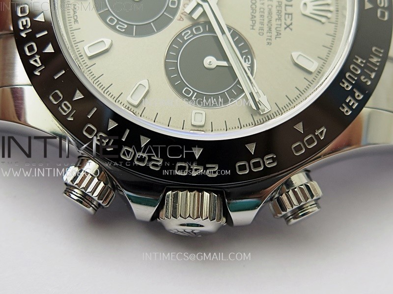 Bezel The latest V3 Clean black ceramic tachymeter bezel, real platinum plated correct markers, same shape and depth as genuine bezel