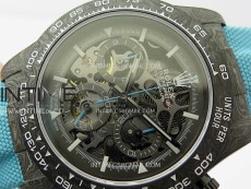 Movement Custom made skeleton Asian Super Clone4130 movement 28800vph, 1:1 replicated from the genuine movement, fully functional. Blue spring same as genuine.