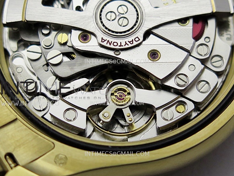 Case 18K yellow gold plated 904L stainless steel case and Cu-W metal to increase watch weight to match the genuine gold watch weight, almost same weight as genuine watch