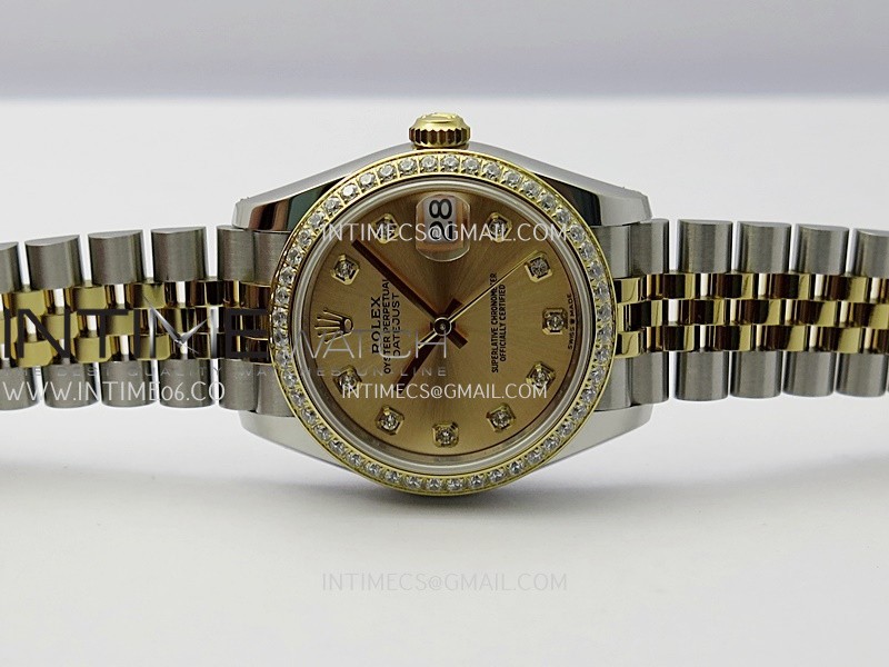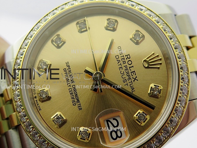 Bezel 18K yellow gold plated solid 904L stainless steel bezel with diamond