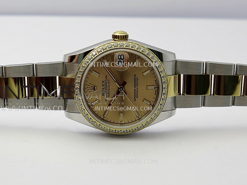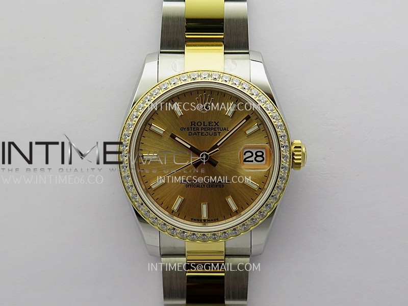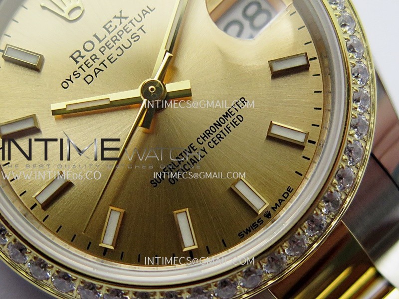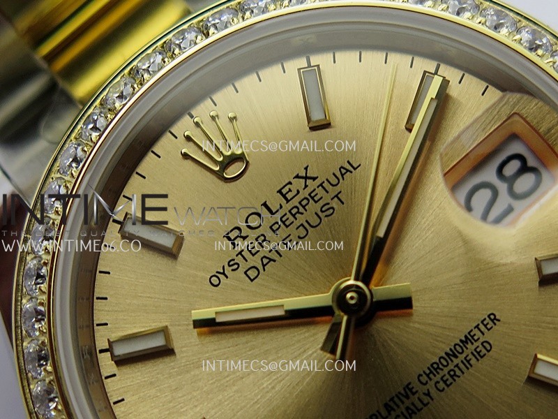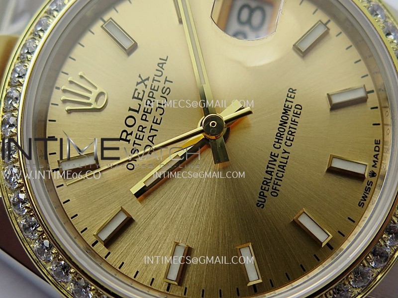 Bezel 18K yellow gold plated solid 904L stainless steel bezel with diamond