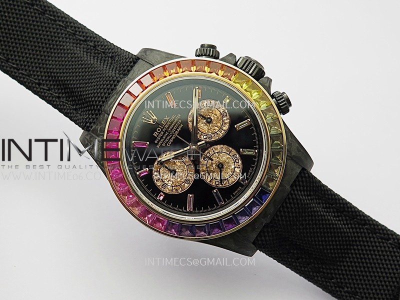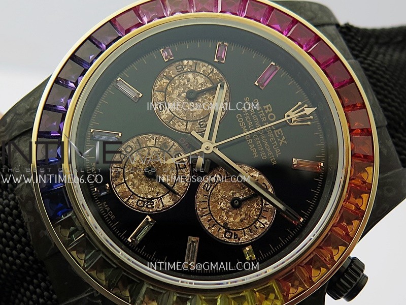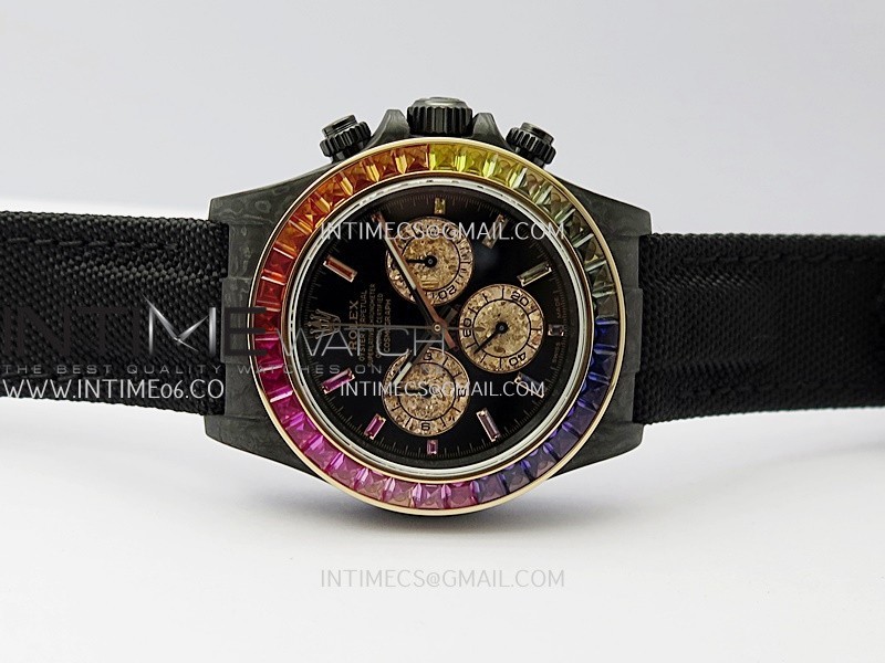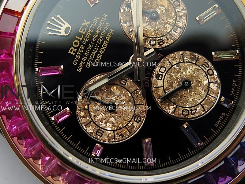 Dial Black dial with rainbow markers