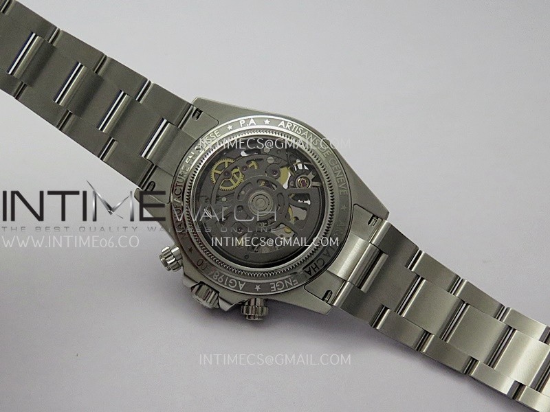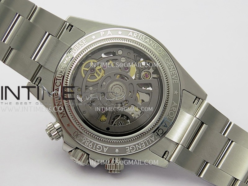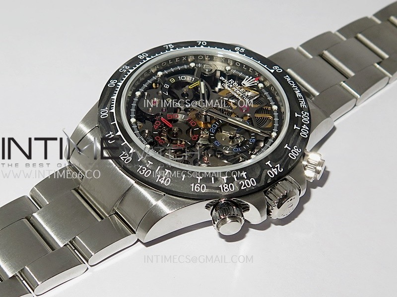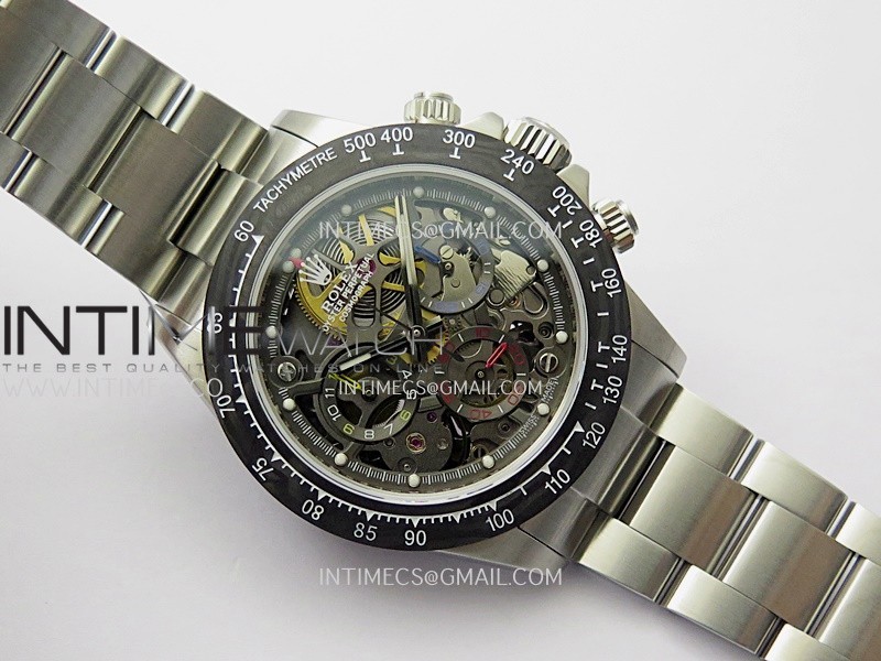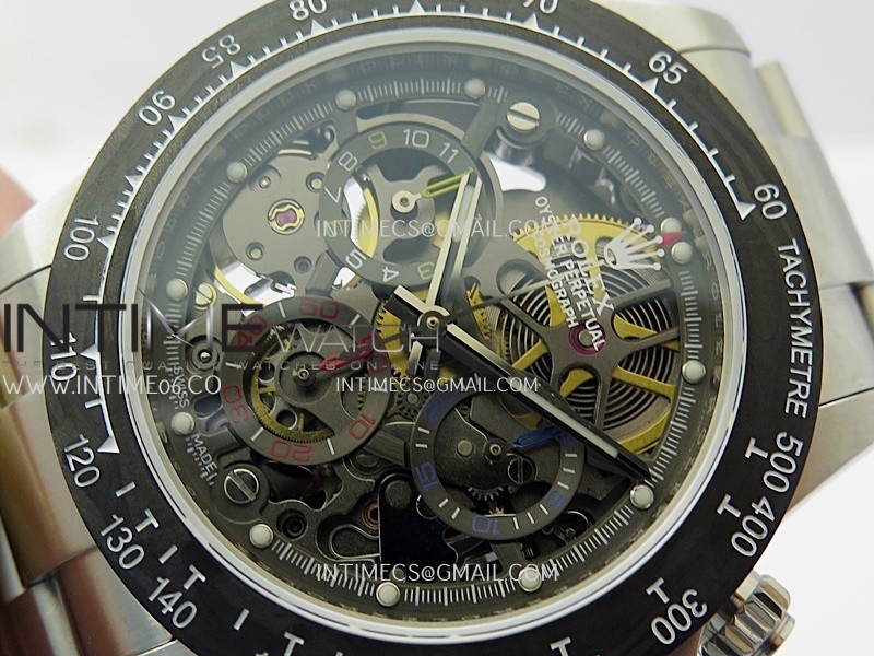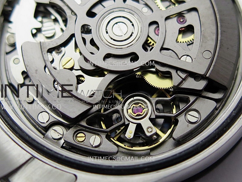 Movement Custom made skeleton Asian 4802 movement 28800vph, 1:1 replicated from the genuine movement, fully functional. Blue spring same as genuine.