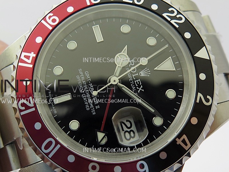 Asian Super Clone 3186 Automatic Movement at 28800 vph, Correct Handstack, self-winding, independent adjustable hour hand to set the date, same adjusting as genuine