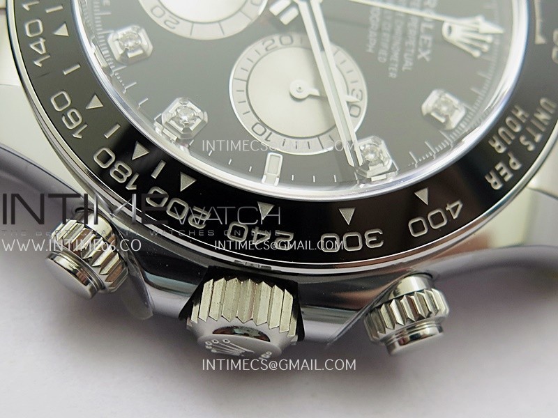 Bezel Black ceramic tachymeter bezel, real gold plated correct markers, same shape and depth as genuine bezel