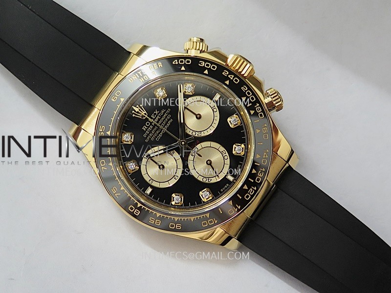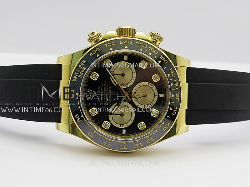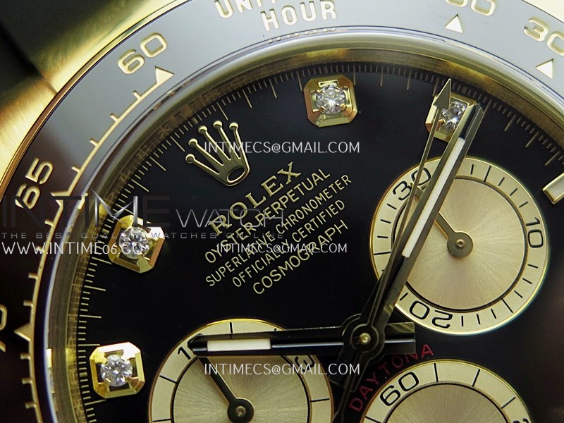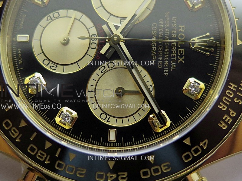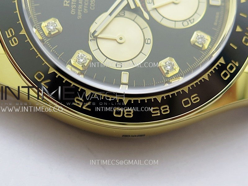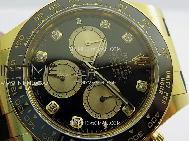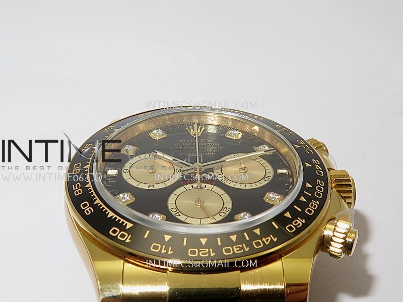 Bezel Black ceramic tachymeter bezel, real gold plated correct markers, same shape and depth as genuine bezel