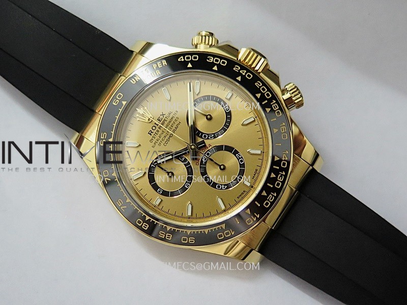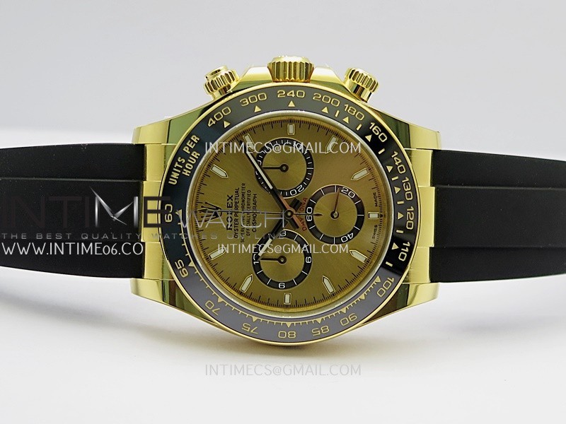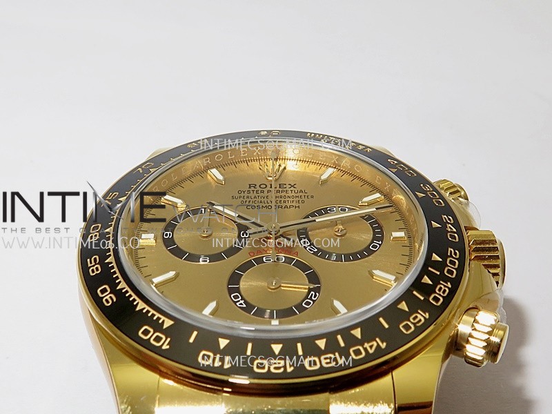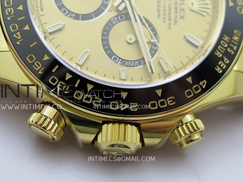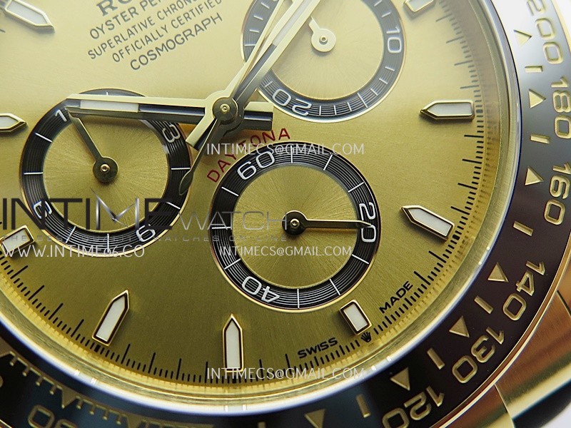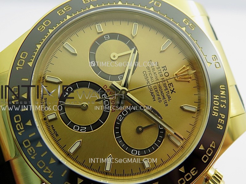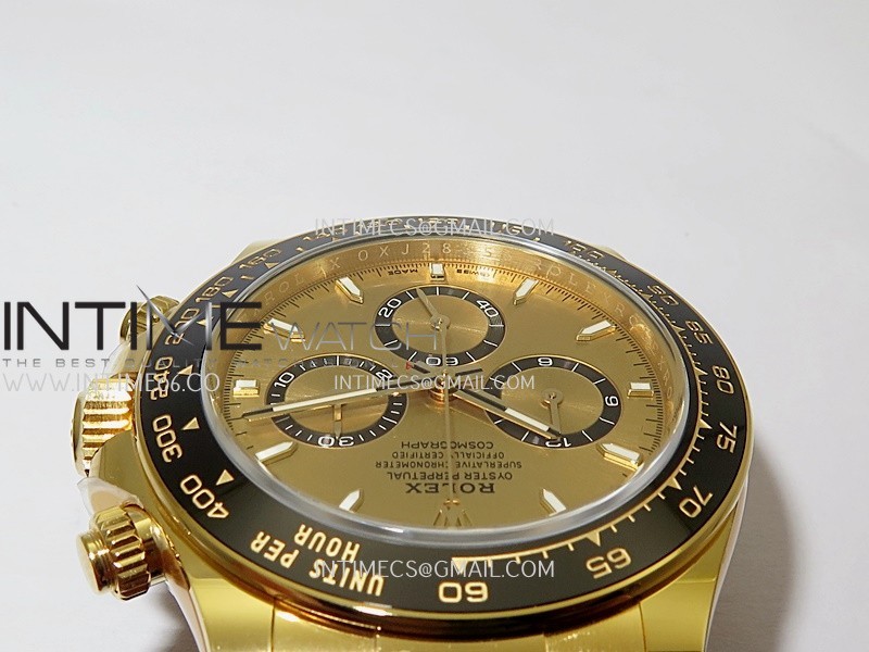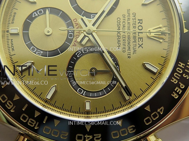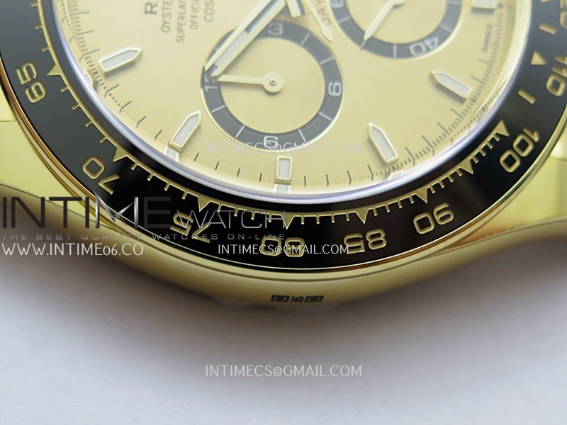 Bezel Black ceramic tachymeter bezel, real gold plated correct markers, same shape and depth as genuine bezel