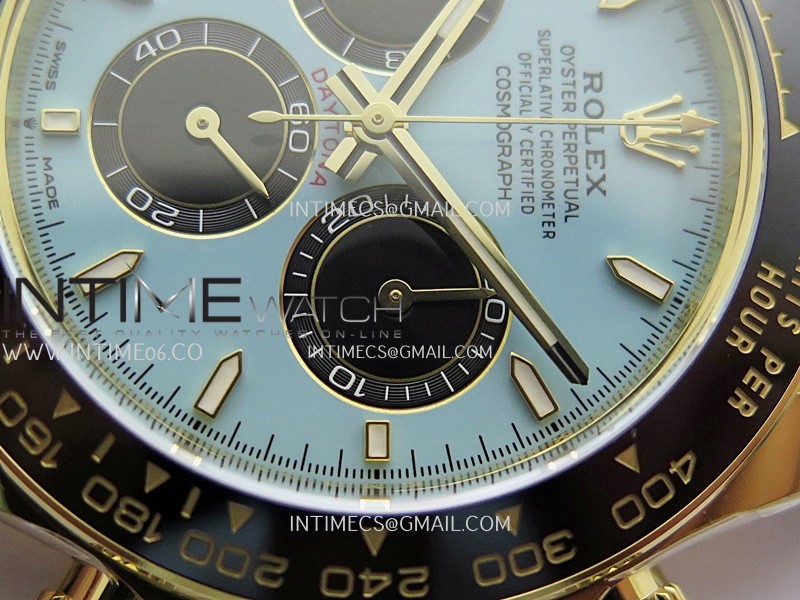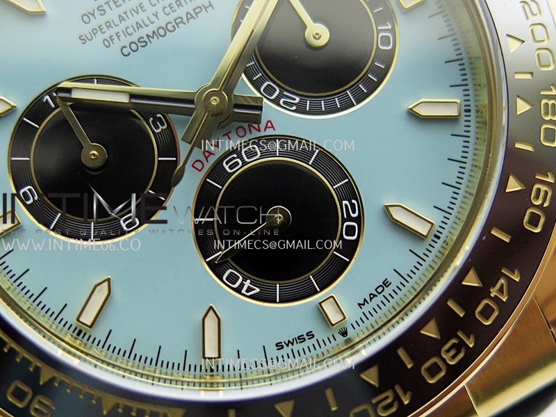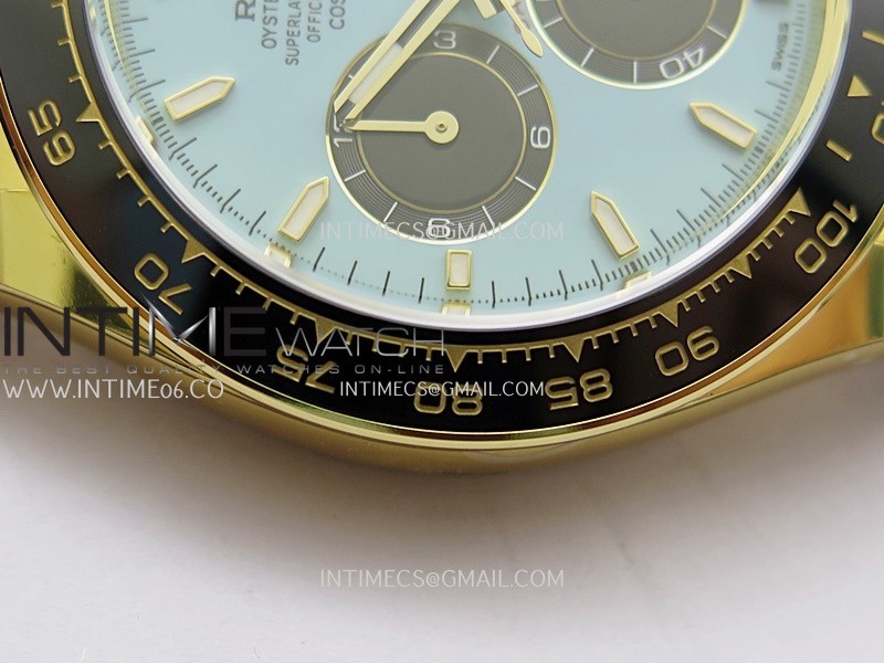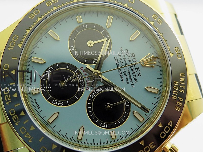 Bezel Black ceramic tachymeter bezel, real gold plated correct markers, same shape and depth as genuine bezel