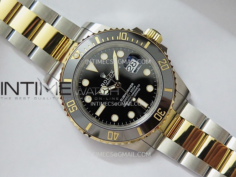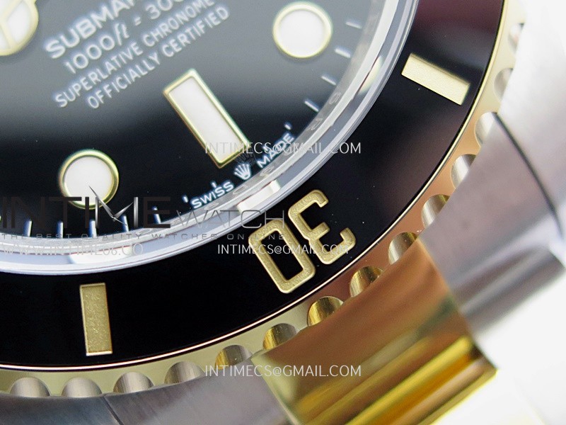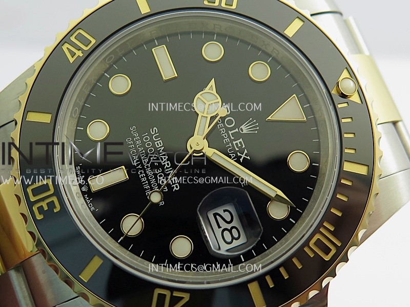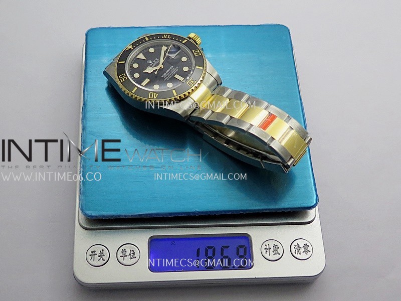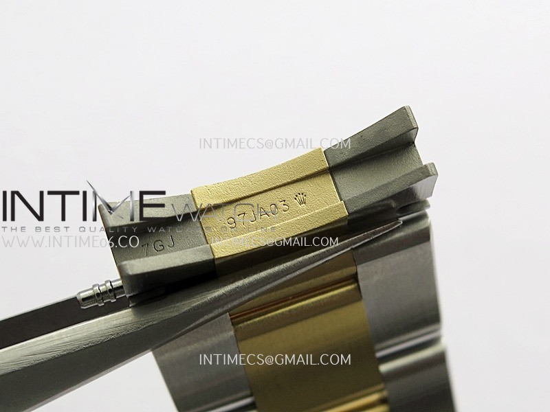 Strap Solid 904L stainless steel bracelet with 18k yellow gold plated middle links(Cu-W metal to increase watch weight to match the genuine gold watch weight, almost same weight as genuine watch)
