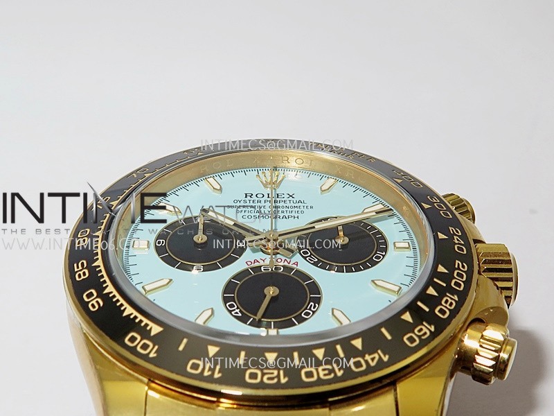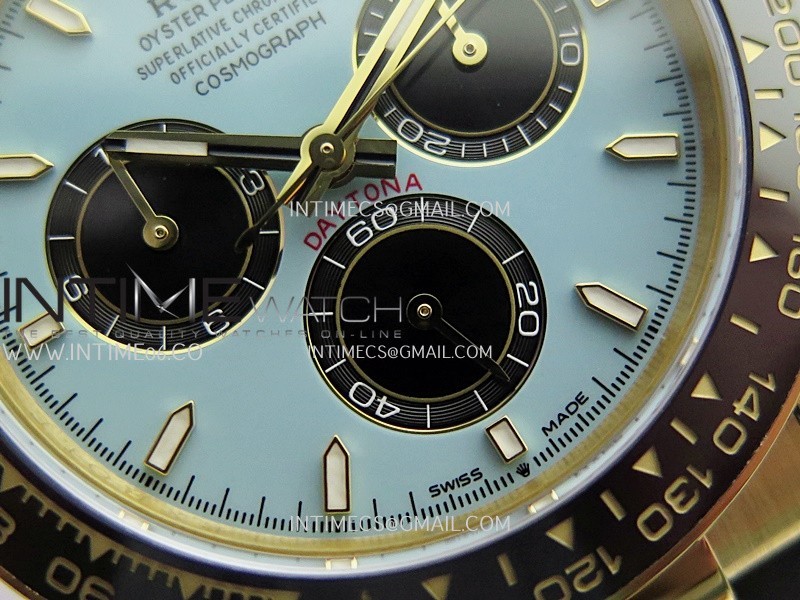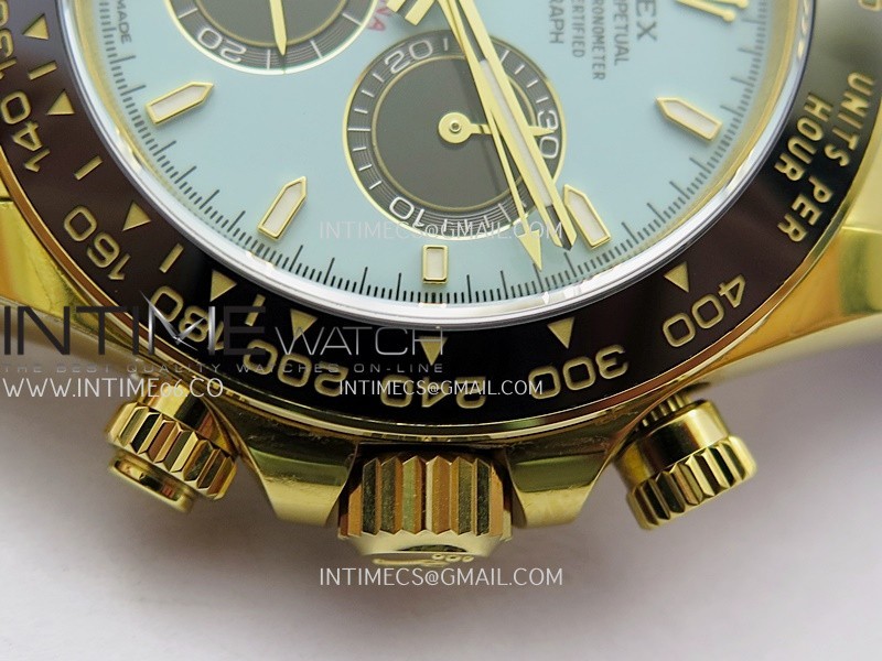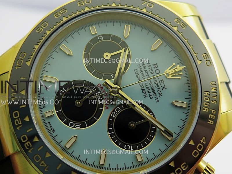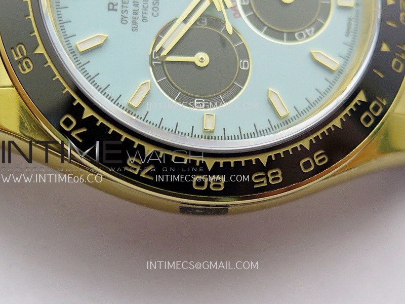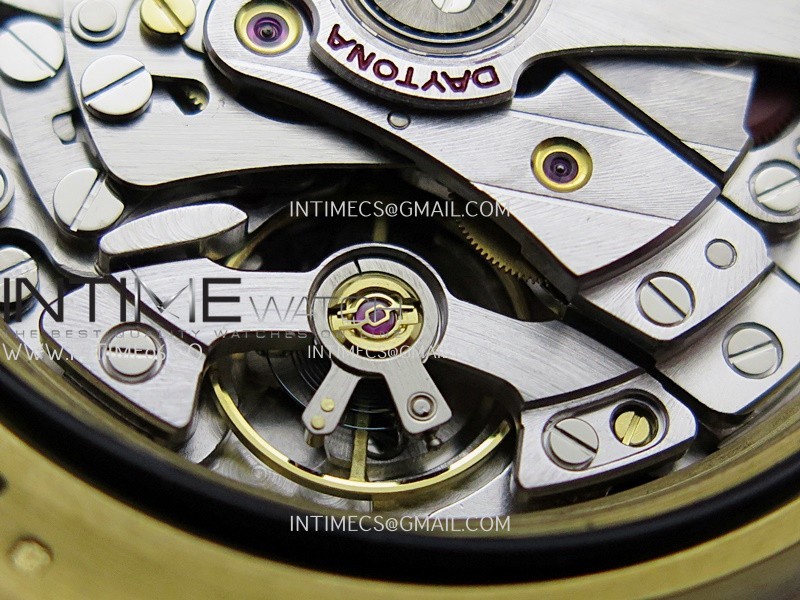 Bezel Black ceramic tachymeter bezel, real gold plated correct markers, same shape and depth as genuine bezel