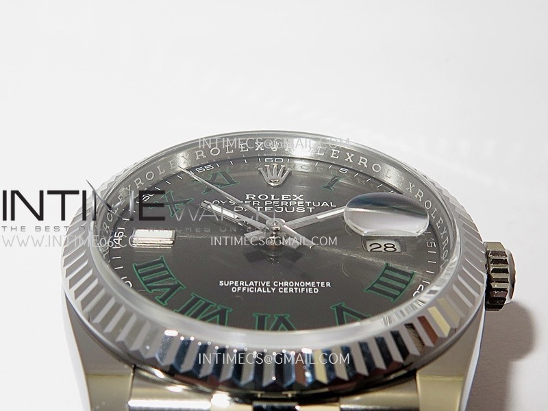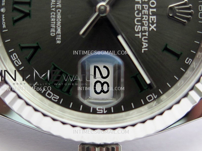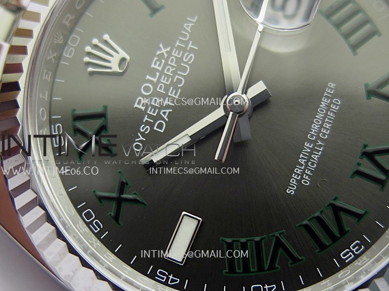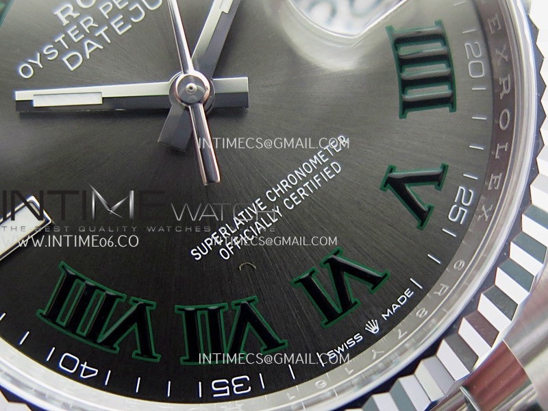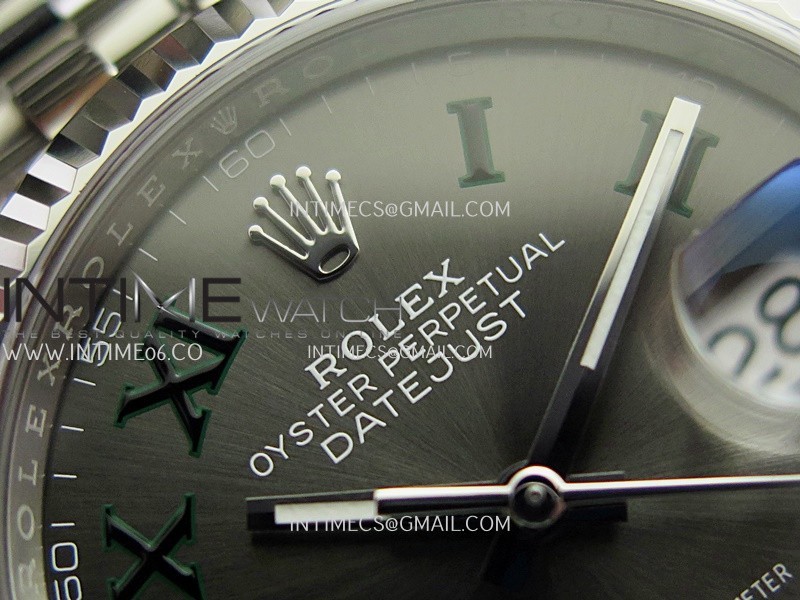 Dial Superlumed dial and hands in correct blue color, Gray Dial Green Roman Marker