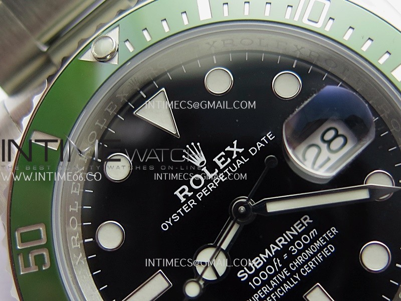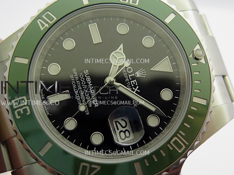 Bezel Uni-directional rotating green ceramic bezel, very close to genuine green color