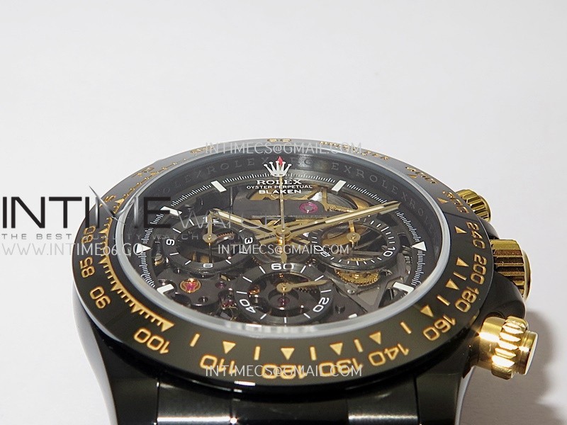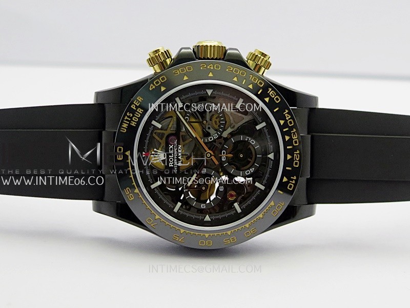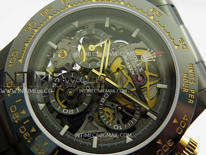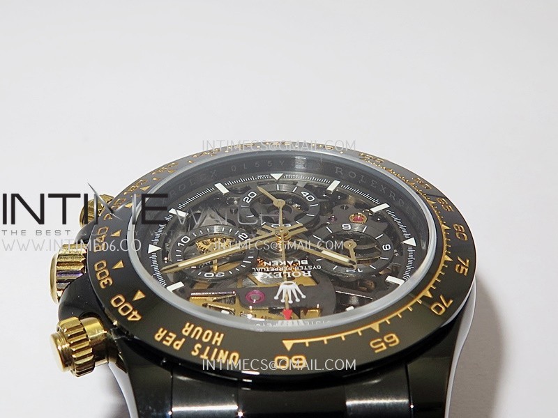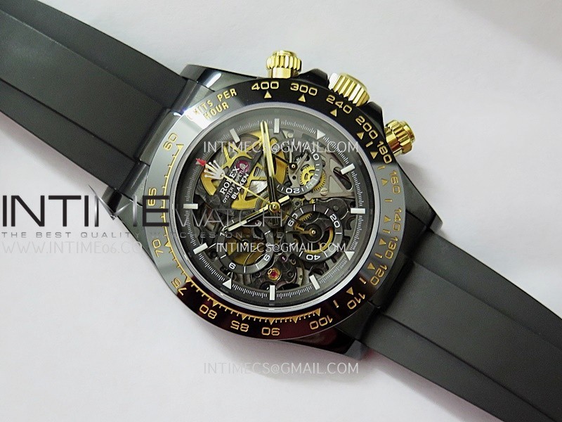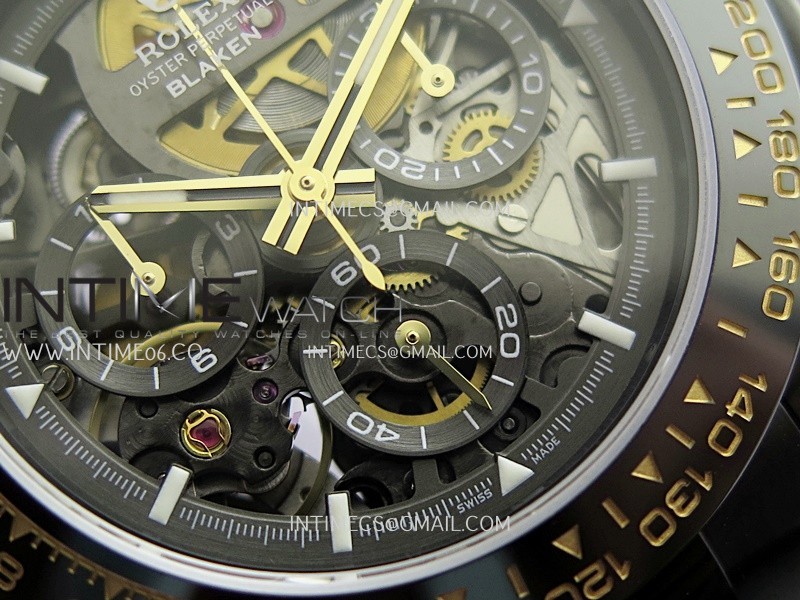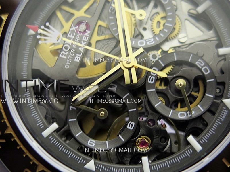 Movement Custom made skeleton Asian Super Clone4130 movement 28800vph, 1:1 replicated from the genuine movement, fully functional. Blue spring same as genuine.