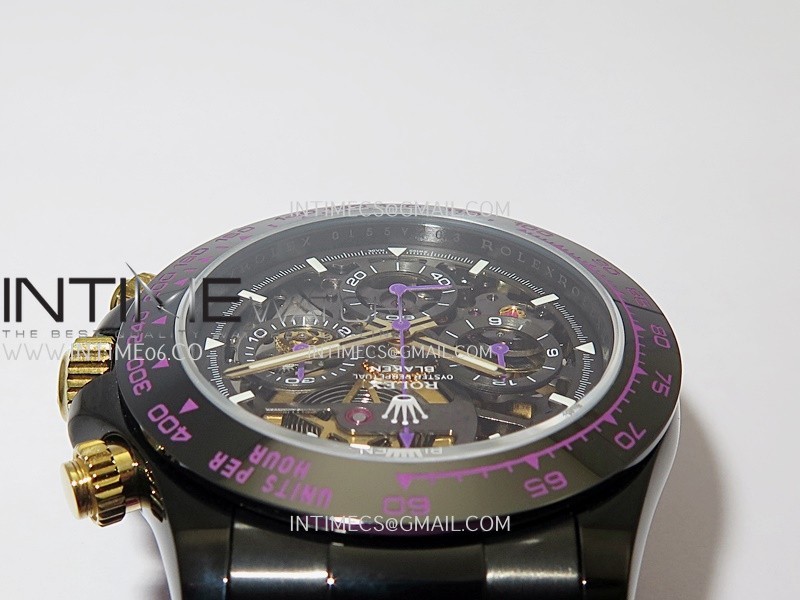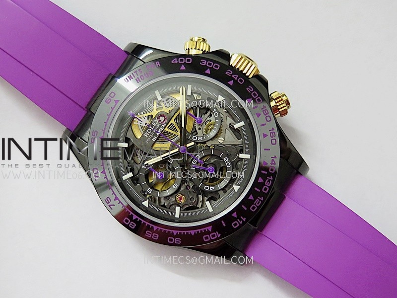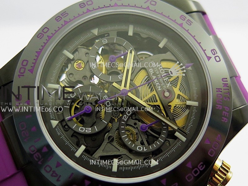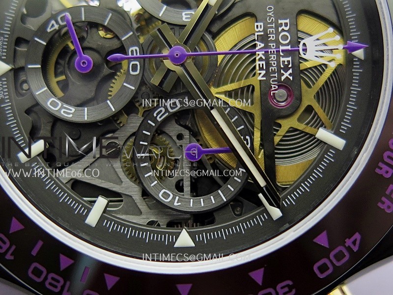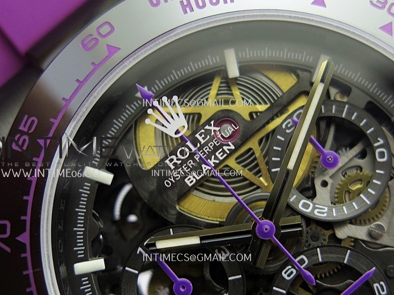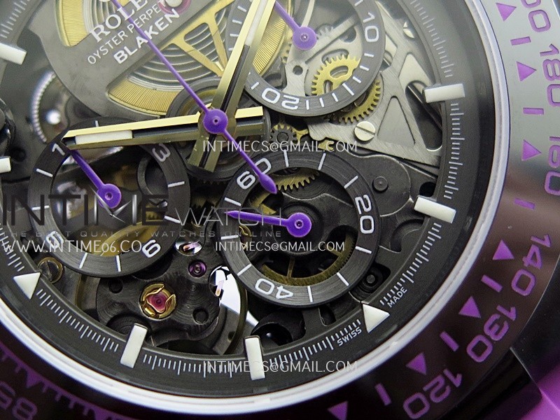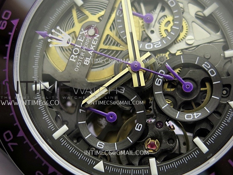 Movement Custom made skeleton Asian Super Clone4130 movement 28800vph, 1:1 replicated from the genuine movement, fully functional. Blue spring same as genuine.