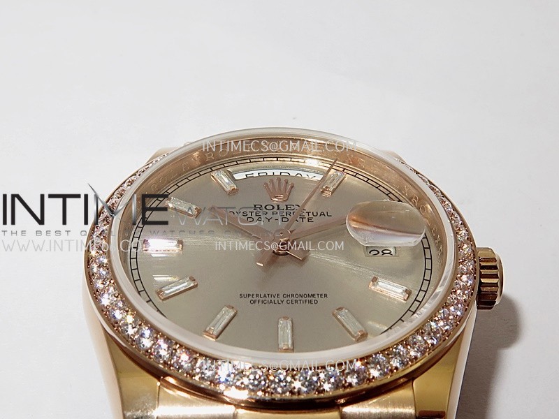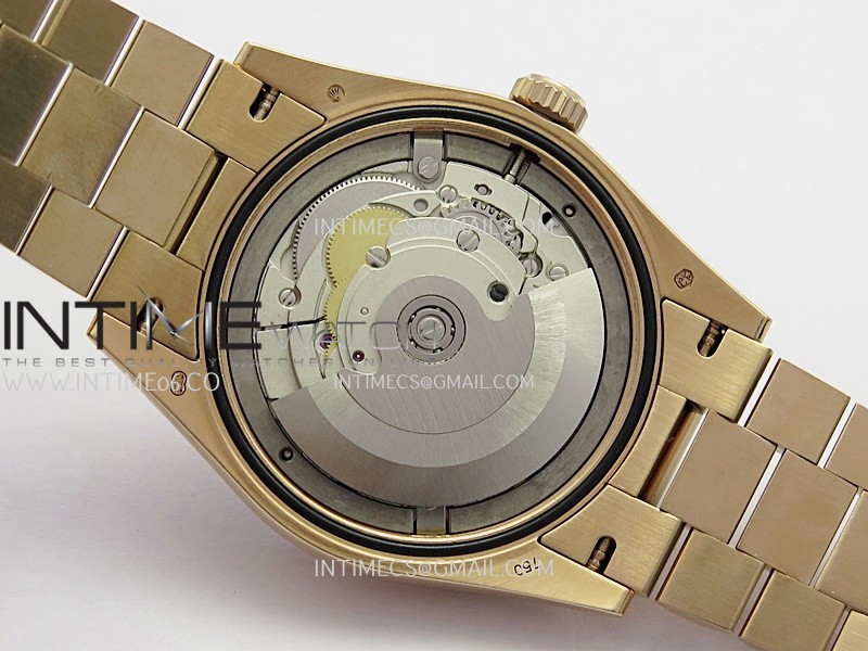 Case 18K rose gold plated 904L stainless steel + tungsten case to increase watch weight to match the genuine gold watch weight