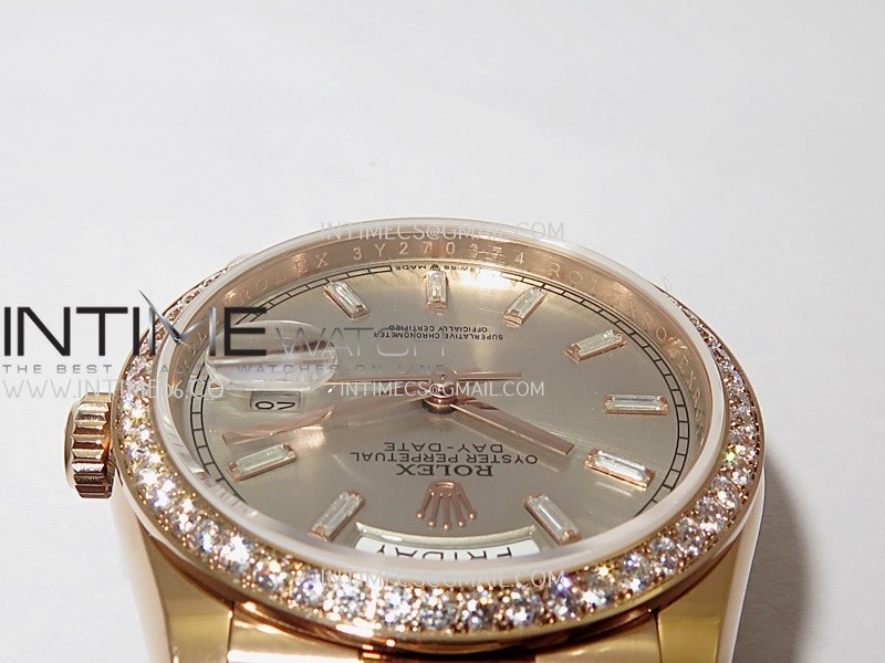Strap 18K rose gold plated 904L stainless steel + tungsten case bracelet to increase watch weight to match the genuine gold watch weight