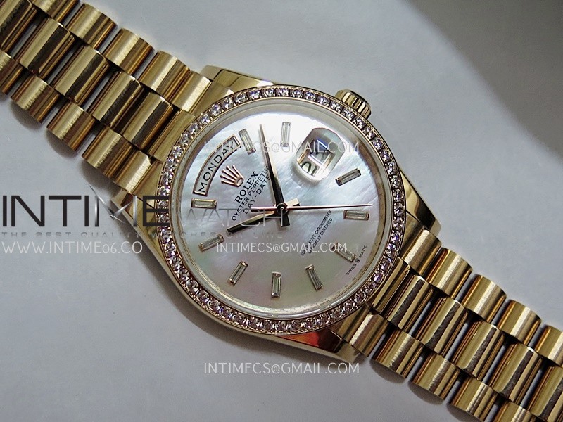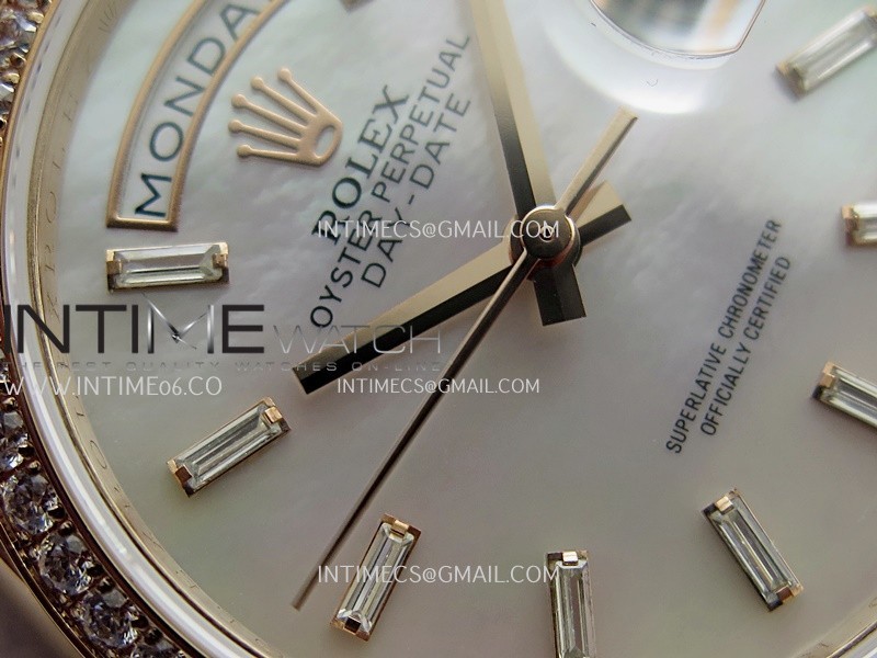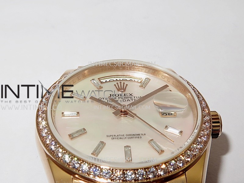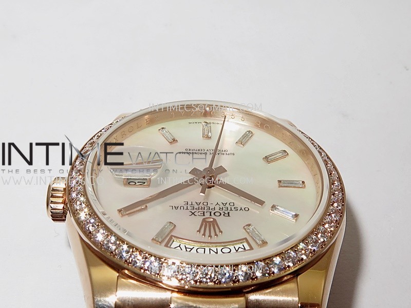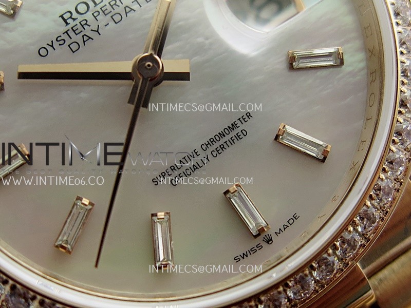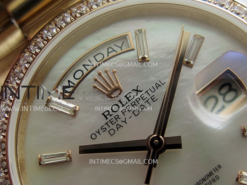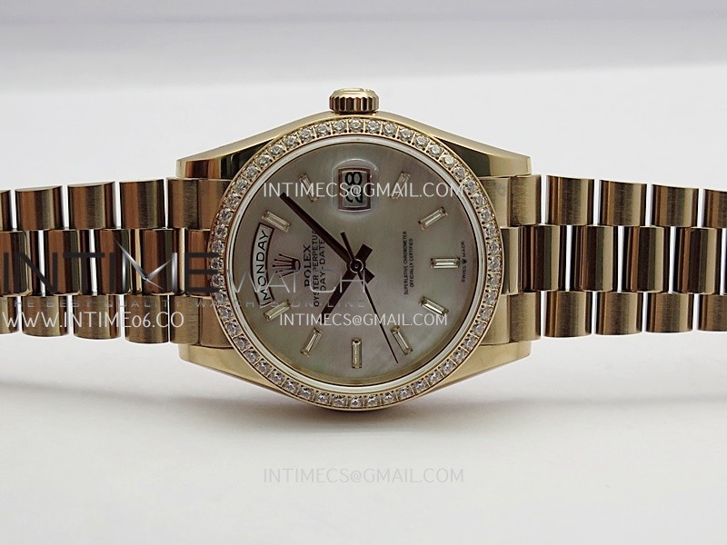 Day Date 128345 RG Gain Weight KF 1:1 White MOP Dial T Diamond Marker On President Bracelet A2836
