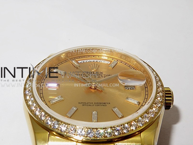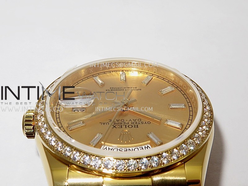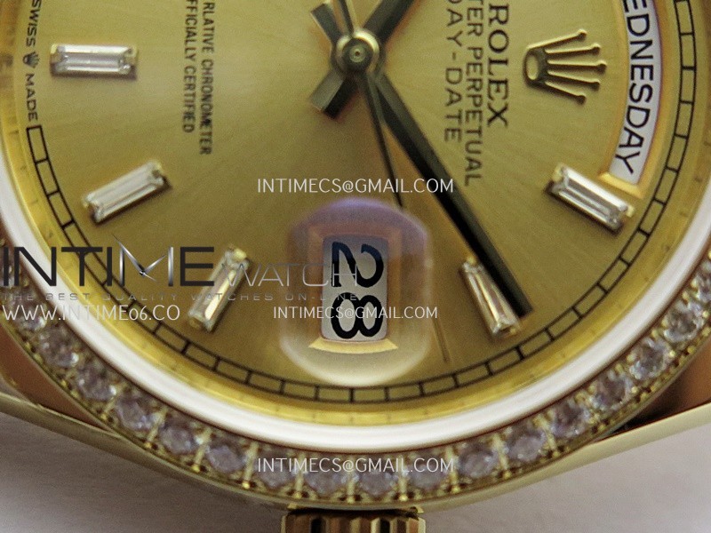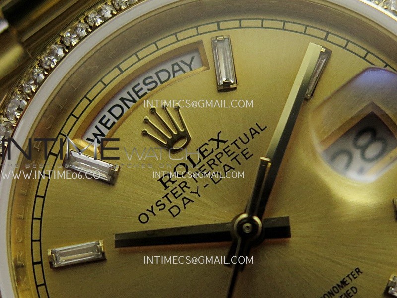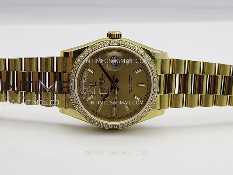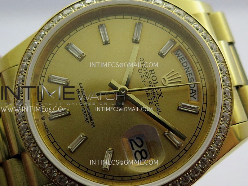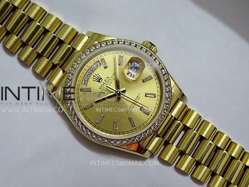 Strap 18K yellow gold plated 904L stainless steel + tungsten case bracelet to increase watch weight to match the genuine gold watch weight