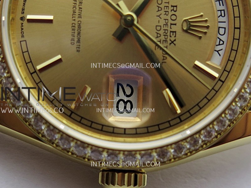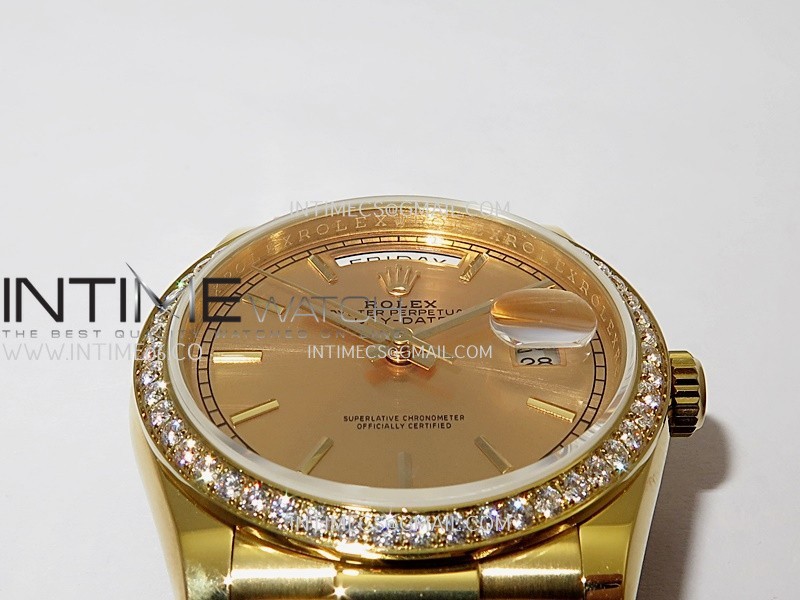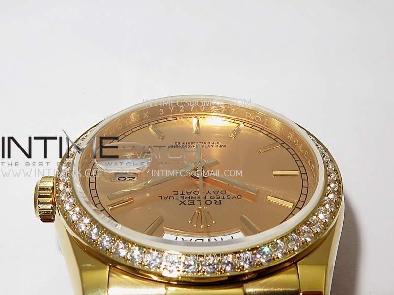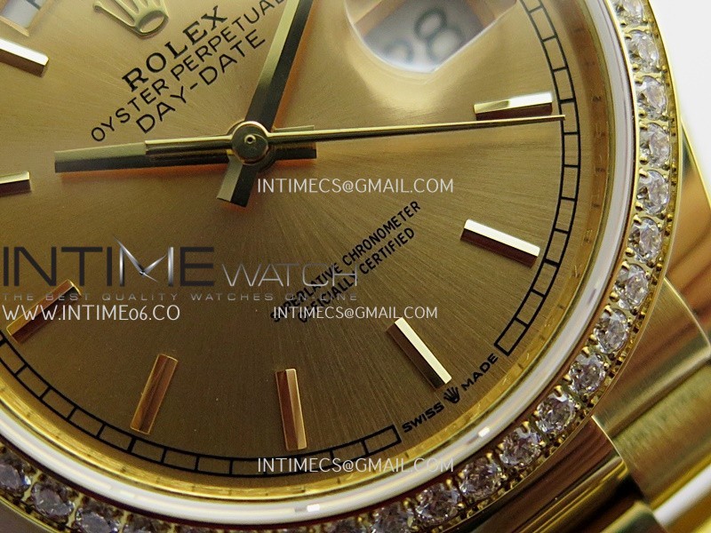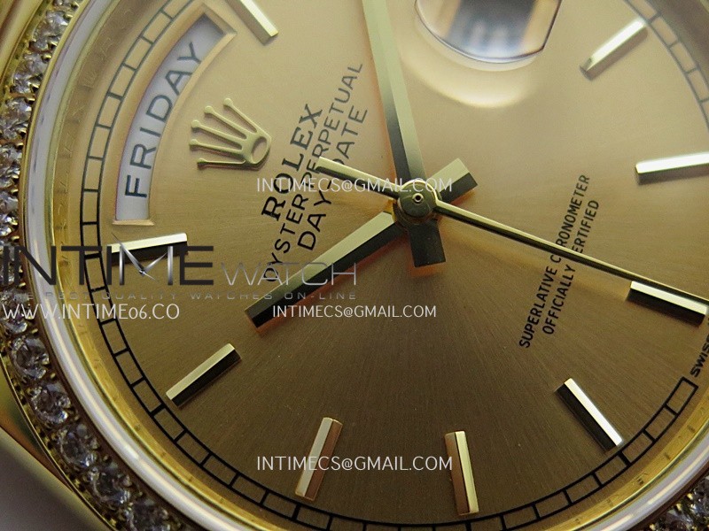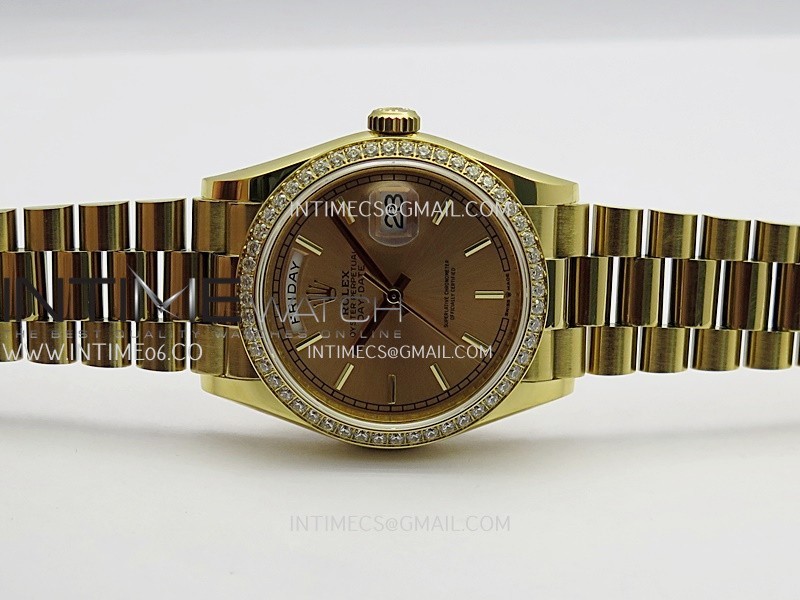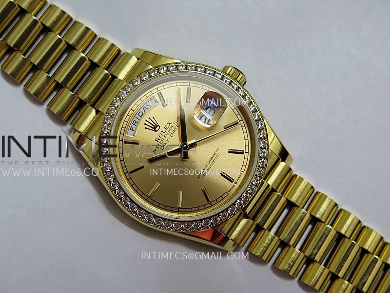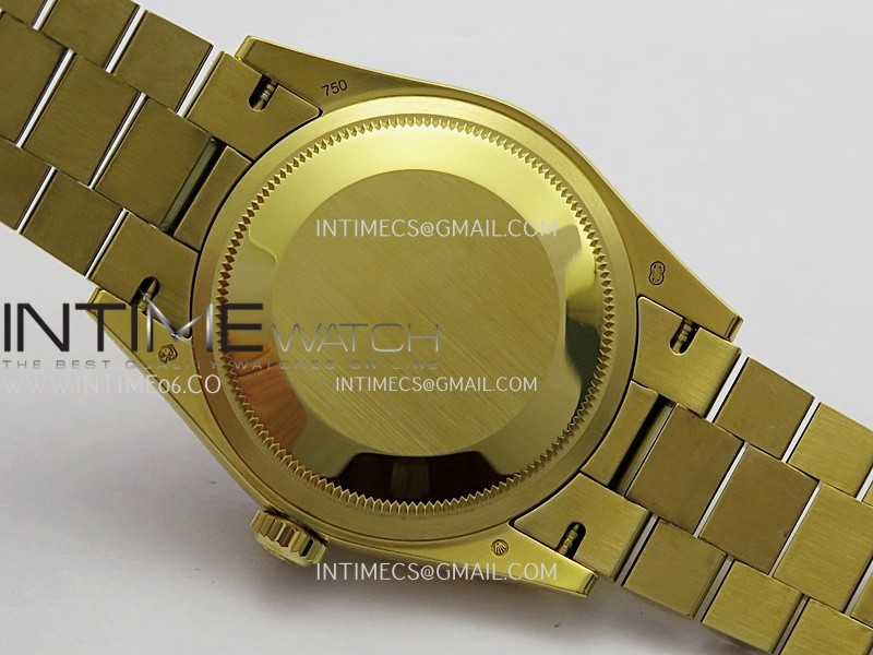 Strap 18K yellow gold plated 904L stainless steel + tungsten case bracelet to increase watch weight to match the genuine gold watch weight