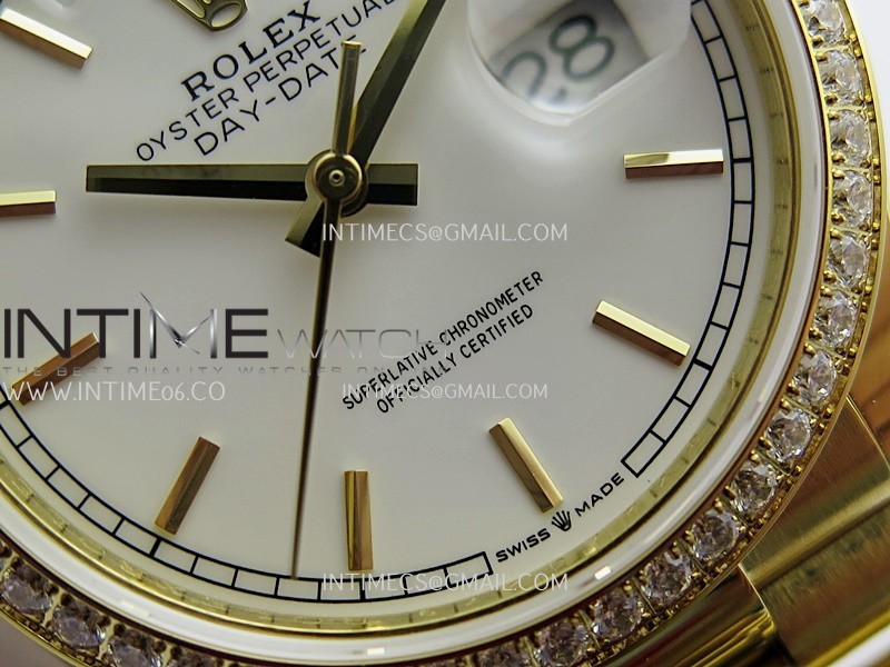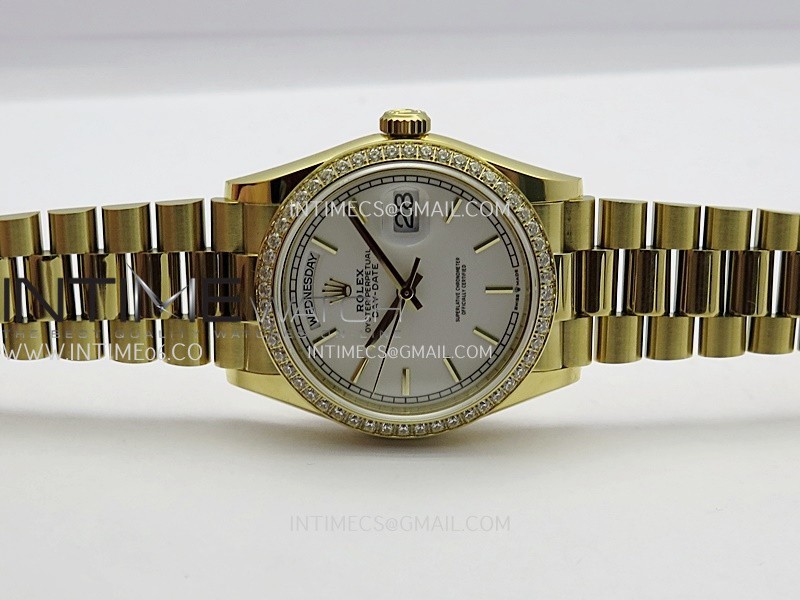 Strap 18K yellow gold plated 904L stainless steel + tungsten case bracelet to increase watch weight to match the genuine gold watch weight