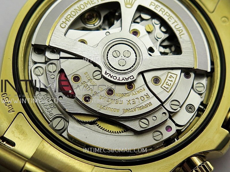 Movement Free Sprung Balance Wheel Shanghai Super Clone UFO.F4131 Slim Chronograph Automatic with Fully Functional Chronograph and decorated Rotor & Bridges/Plates like Rolex Genuine Calibre 4131 for Daytona Chronograph, 72 Hours power reserve.