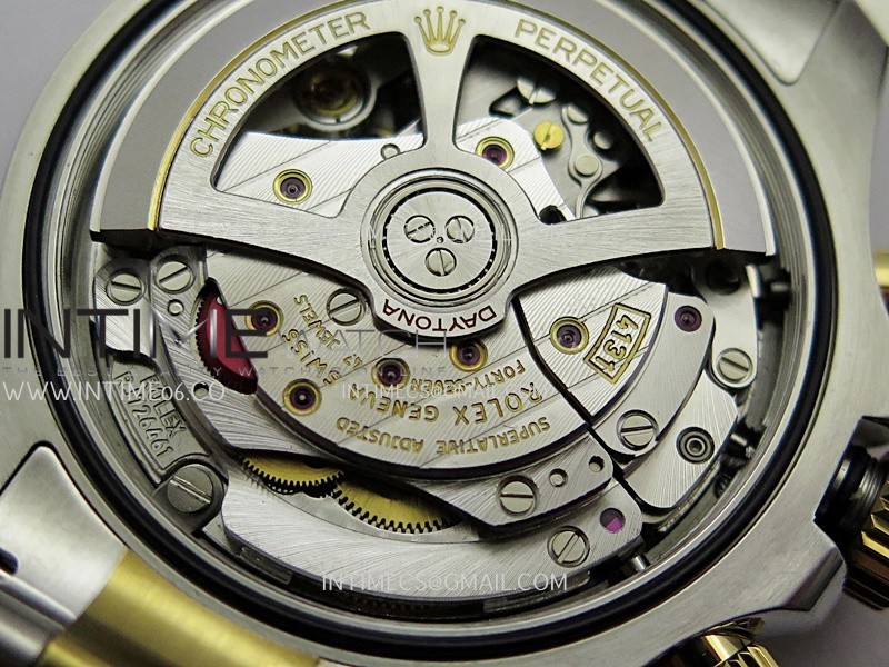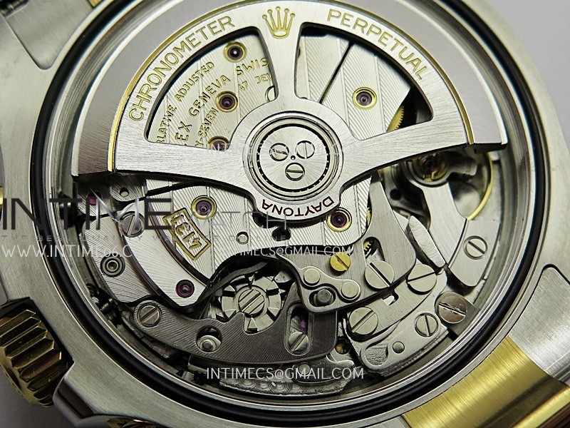 Movement Free Sprung Balance Wheel Shanghai Super Clone UFO.F4131 Slim Chronograph Automatic with Fully Functional Chronograph and decorated Rotor & Bridges/Plates like Rolex Genuine Calibre 4131 for Daytona Chronograph, 72 Hours power reserve.