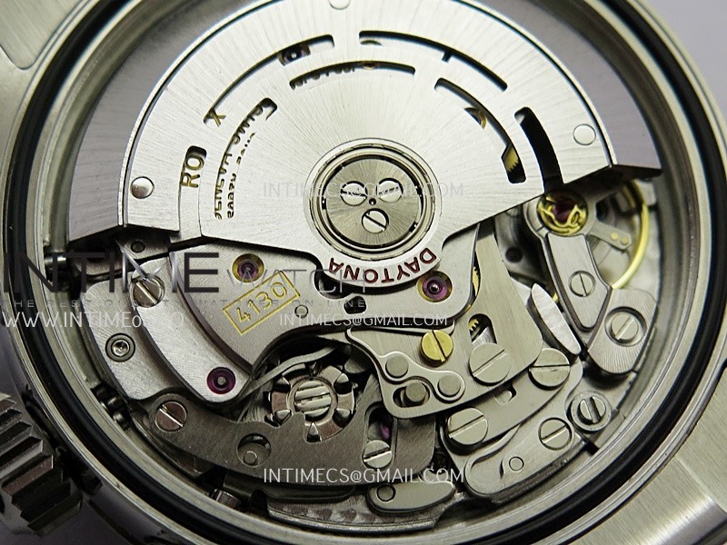 Movement Asian Dandong Super Clone4130 movement 28800vph, 1:1 replicated from the genuine movement, fully functional. Blue spring same as genuine.