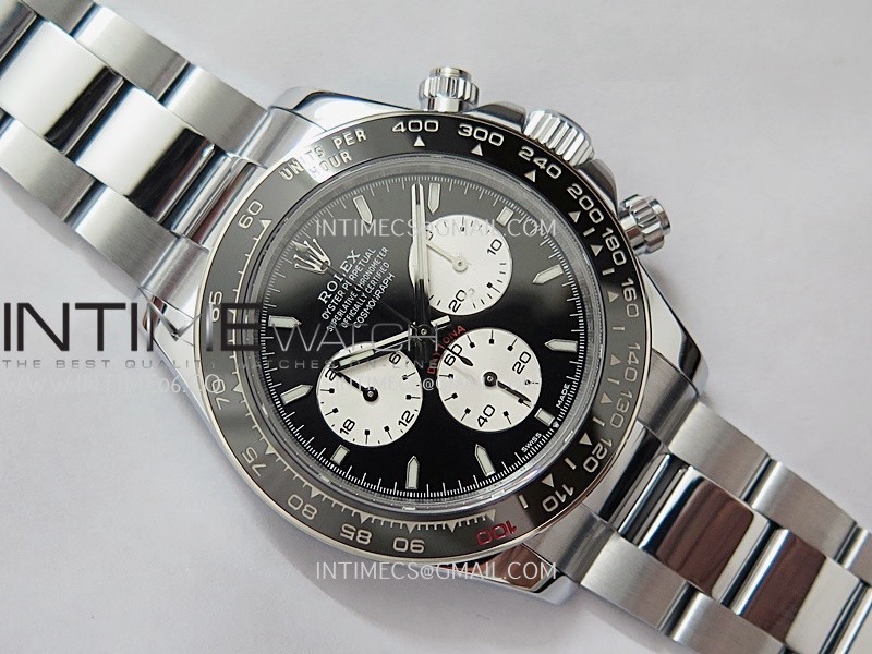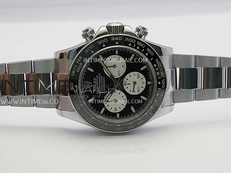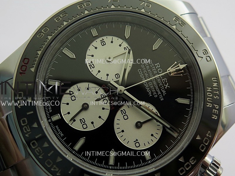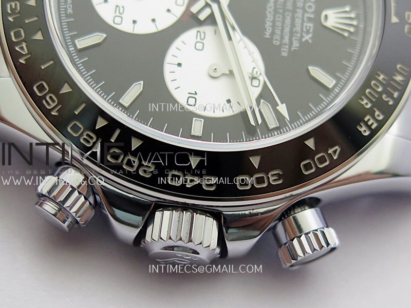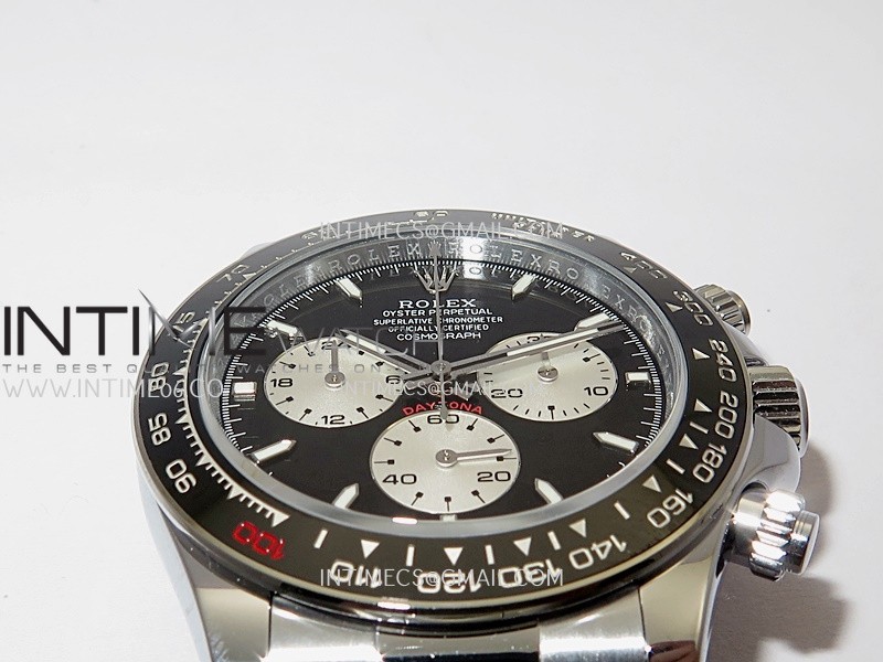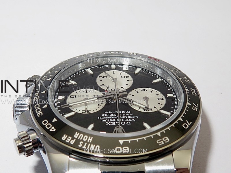 Bezel Black ceramic tachymeter bezel with steel wrapped