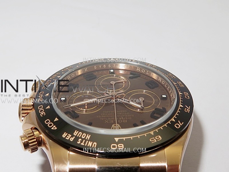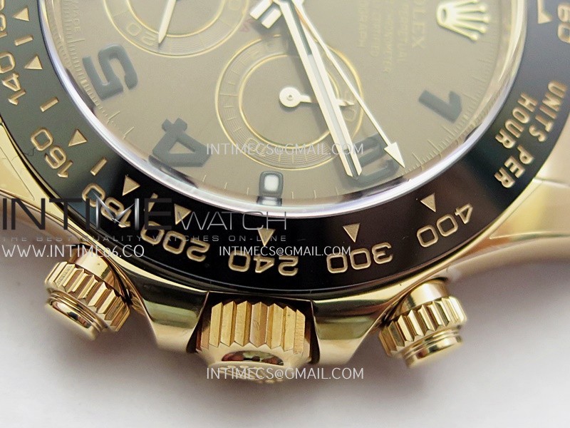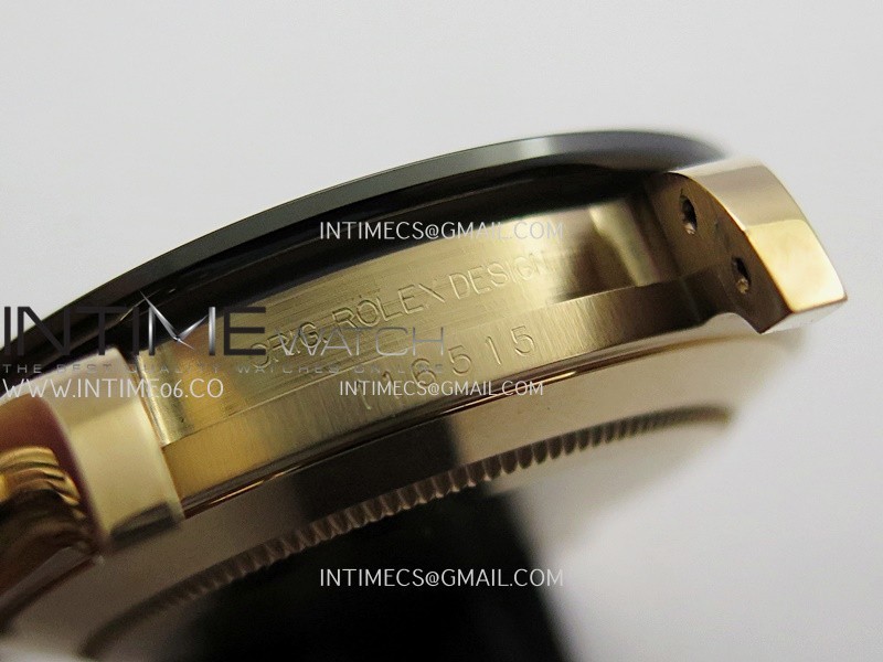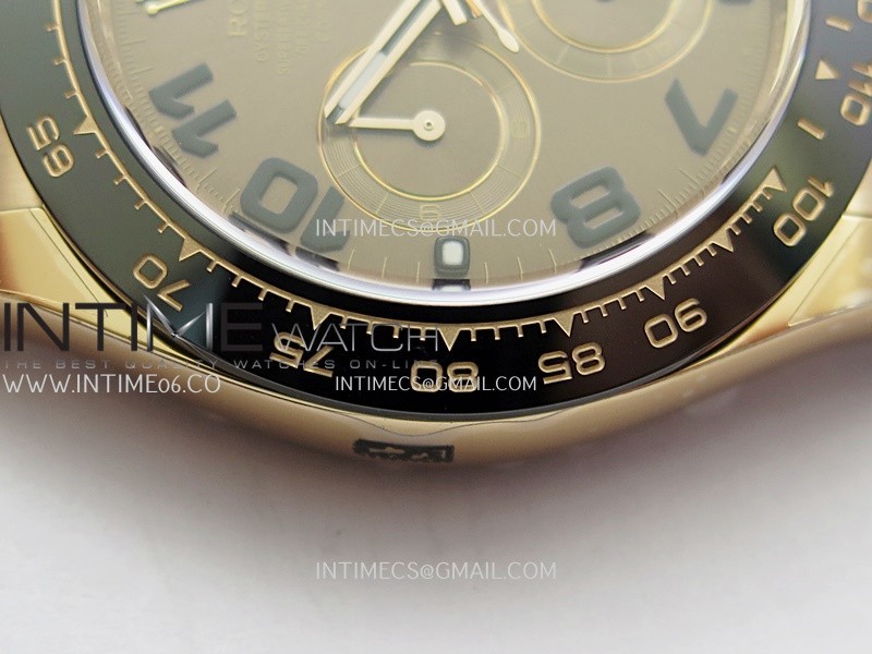 Bezel Black ceramic tachymeter bezel, real gold plated correct markers, same shape and depth as genuine bezel