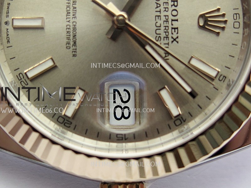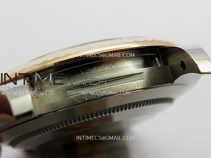 Case 1:1 high quality 18K rose gold plated solid 904L stainless steel, screw-in back and crown, deep and double line engraved rehaut, brighter and more accurate engravings, random serial number engraved at 6:00 of the rehaut. Different random serials