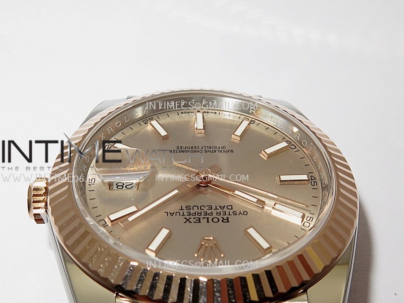 Bezel 18K rose gold plated solid 904L stainless steel fluted bezel, same shape as genuine