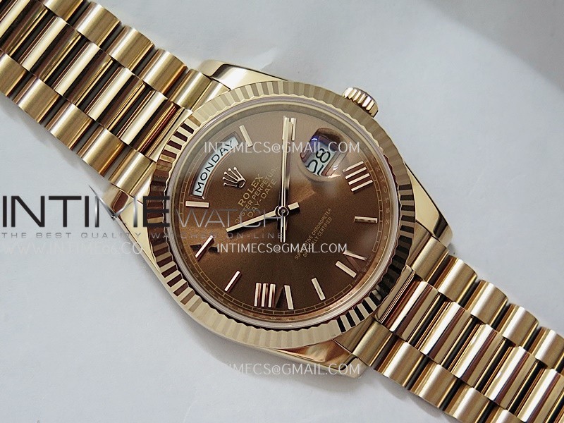 Strap 18K rose gold plated solid 904L stainless steel and Cu-W metal case to increase watch weight to match the genuine gold watch weight