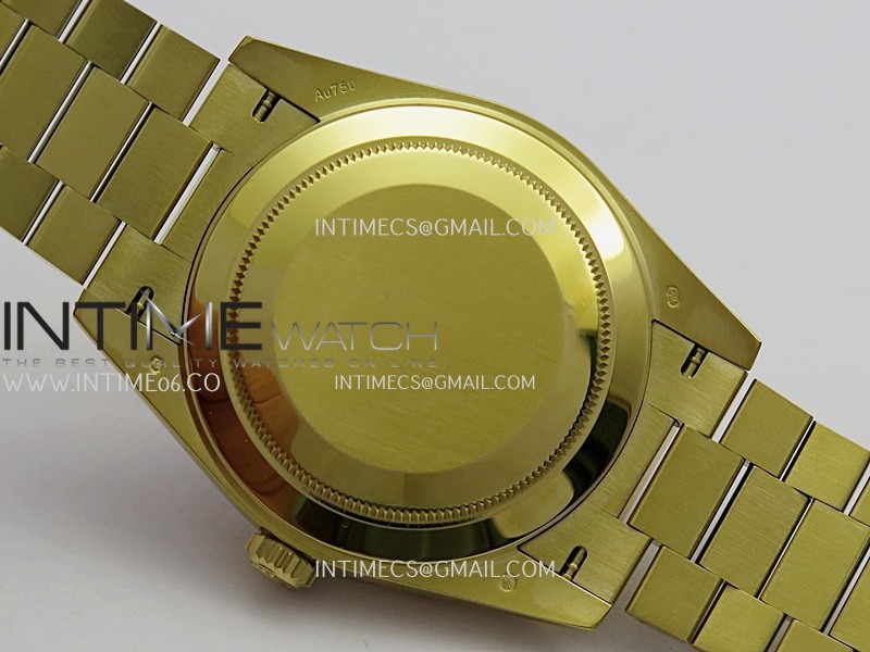 Strap 18K yellow gold plated solid 904L stainless steel and Cu-W metal case to increase watch weight to match the genuine gold watch weight