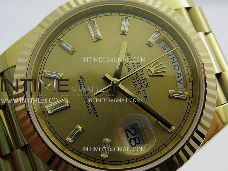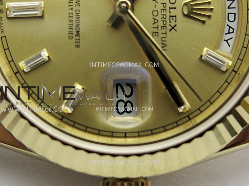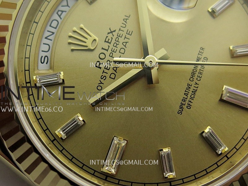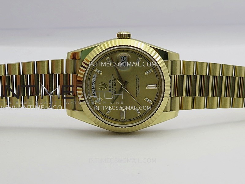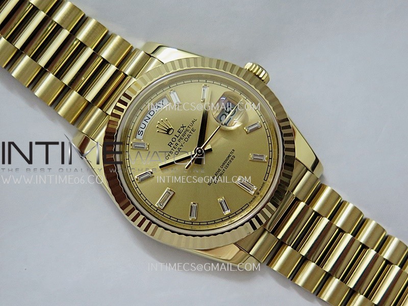 Strap 18K yellow gold plated solid 904L stainless steel and Cu-W metal case to increase watch weight to match the genuine gold watch weight