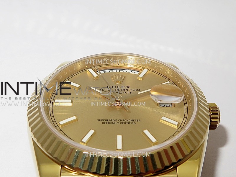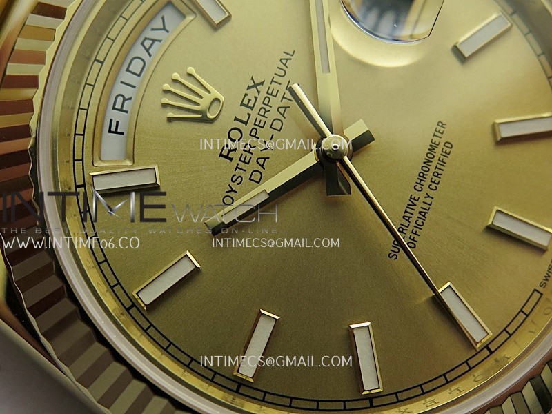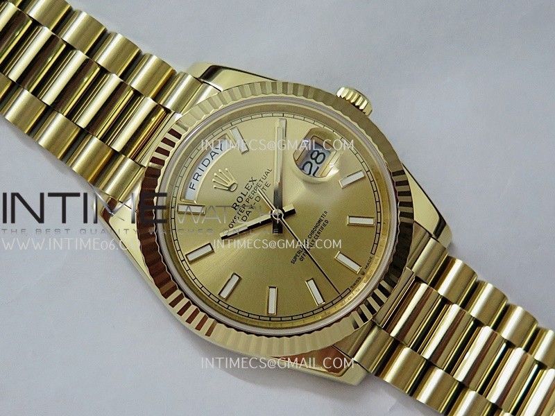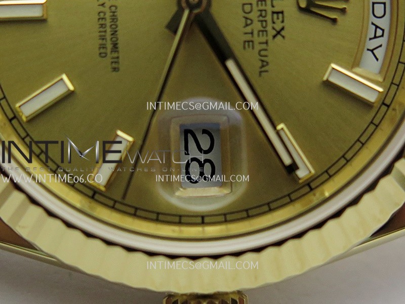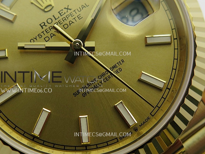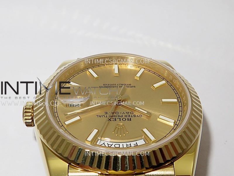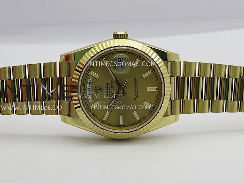 Strap 18K yellow gold plated solid 904L stainless steel and Cu-W metal case to increase watch weight to match the genuine gold watch weight