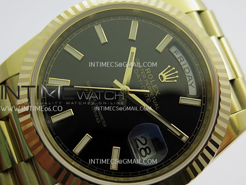 Strap 18K yellow gold plated solid 904L stainless steel and Cu-W metal case to increase watch weight to match the genuine gold watch weight