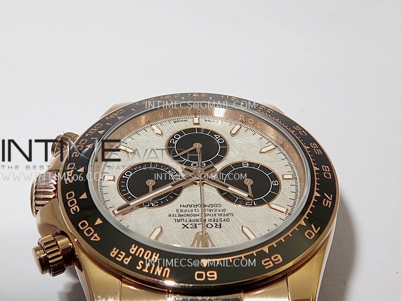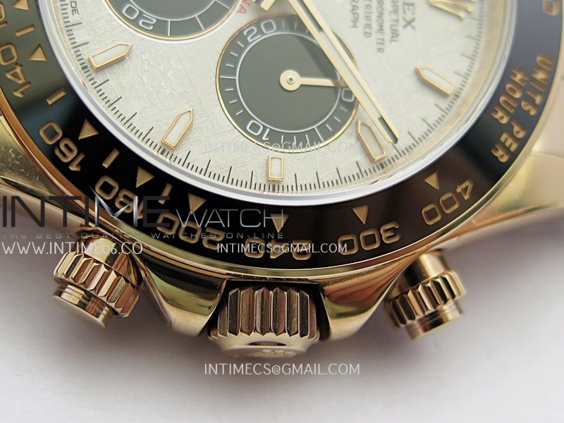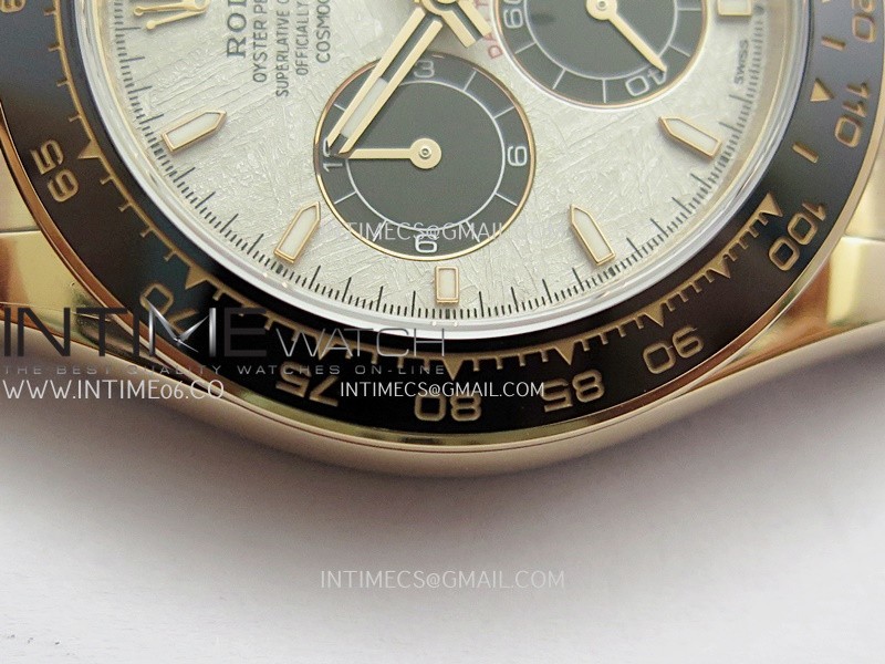 Bezel Black ceramic tachymeter bezel, real gold plated correct markers, same shape and depth as genuine bezel
