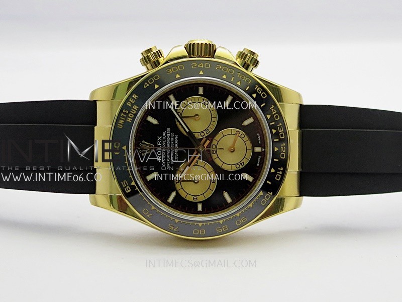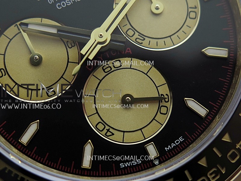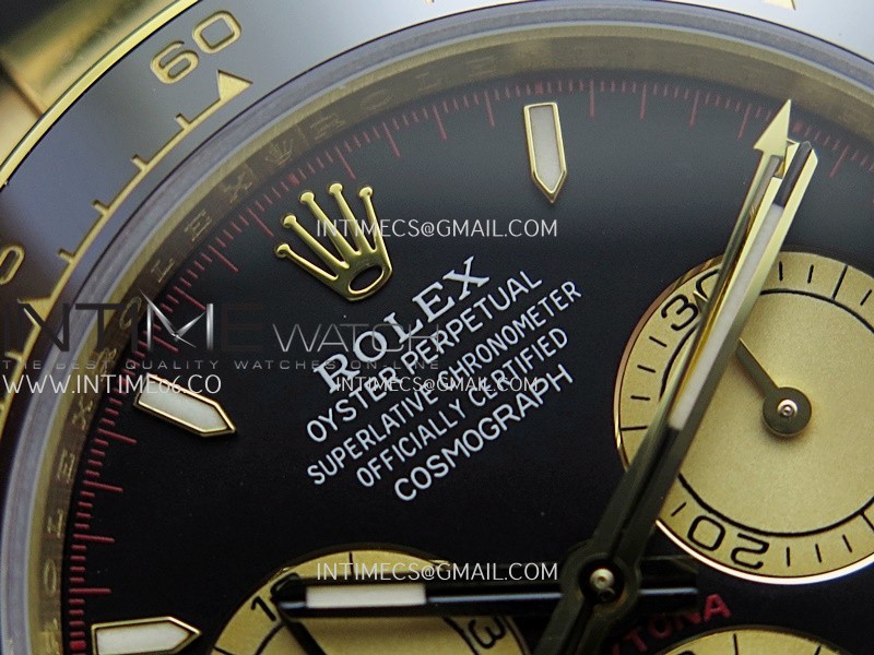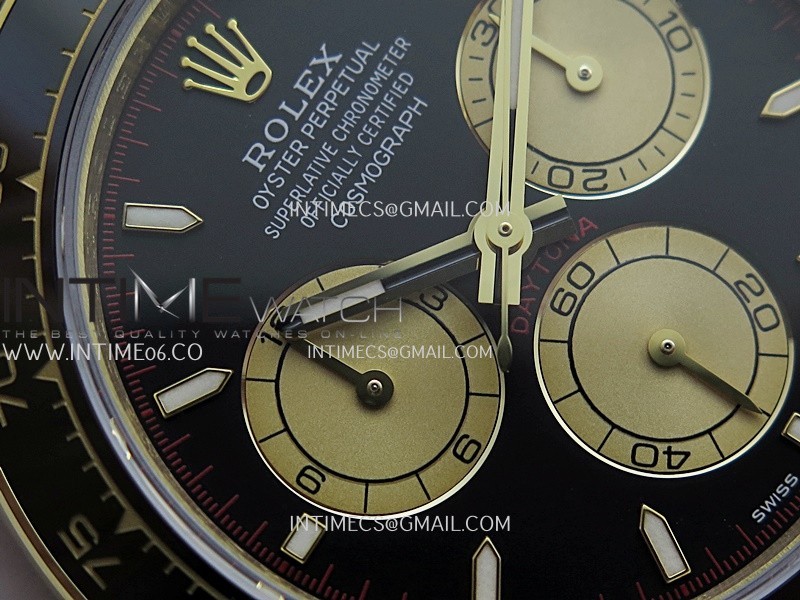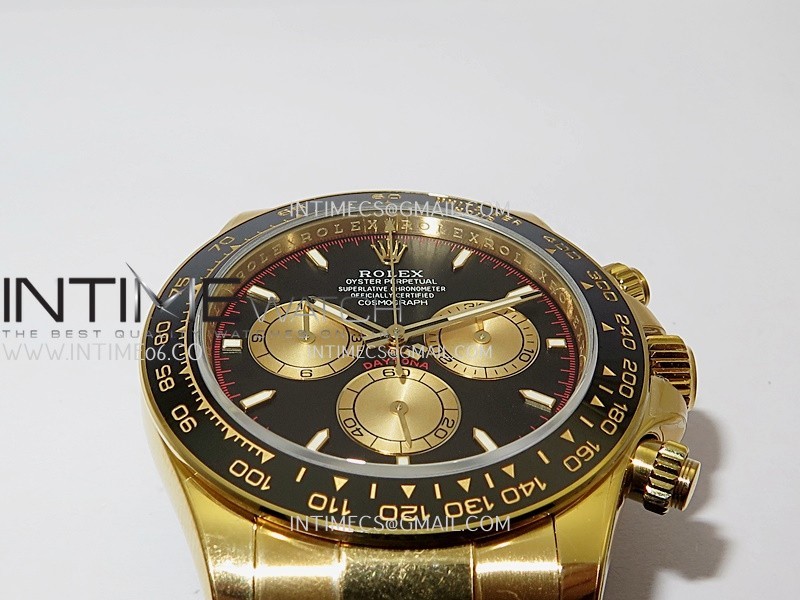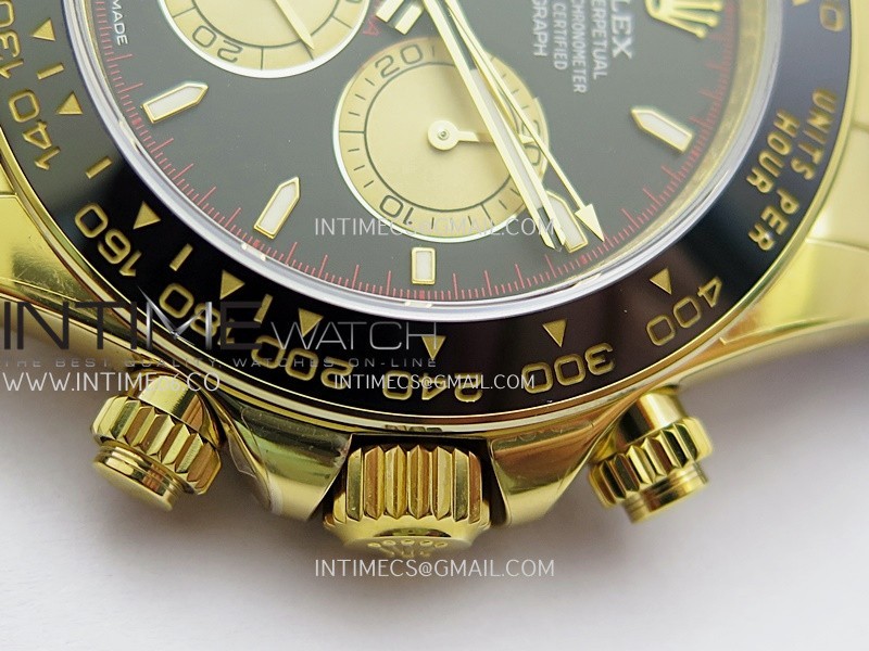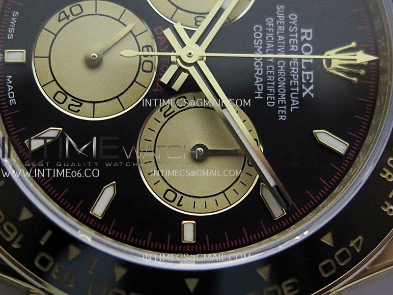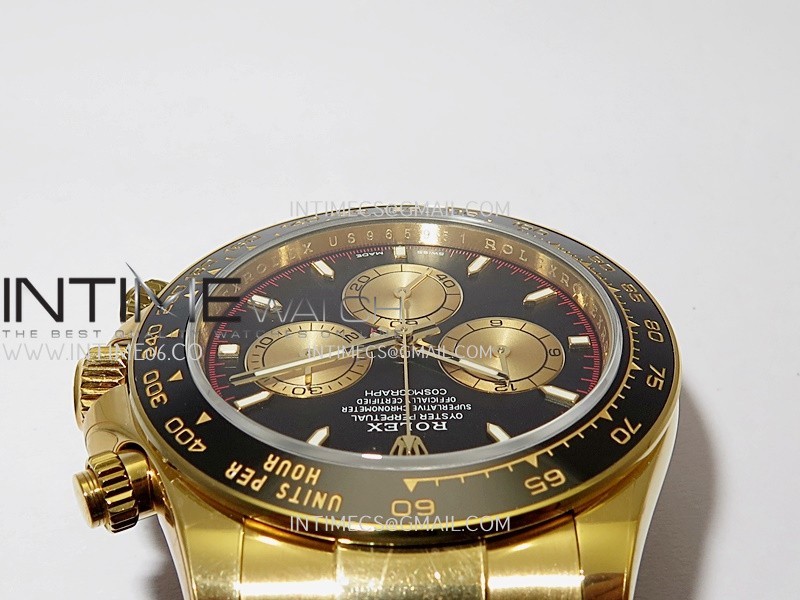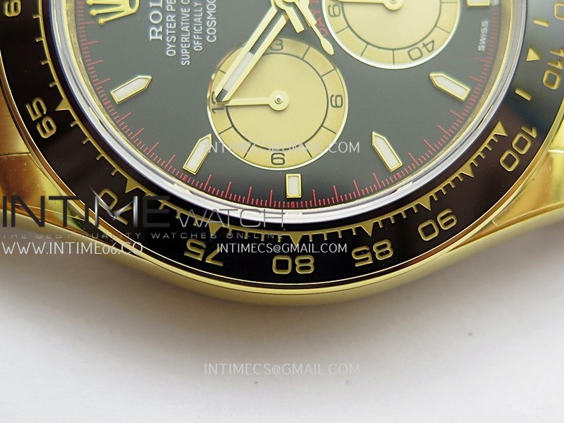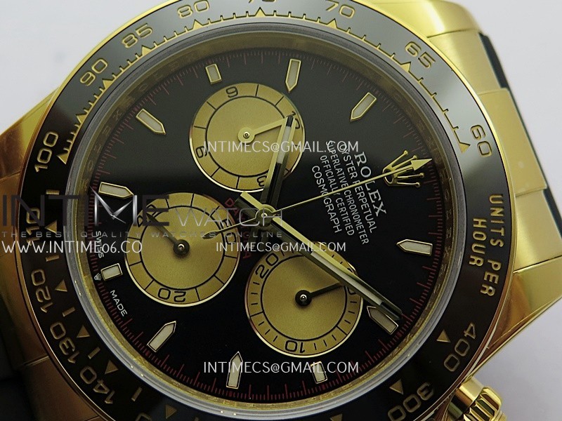 Bezel Black ceramic tachymeter bezel, real gold plated correct markers, same shape and depth as genuine bezel