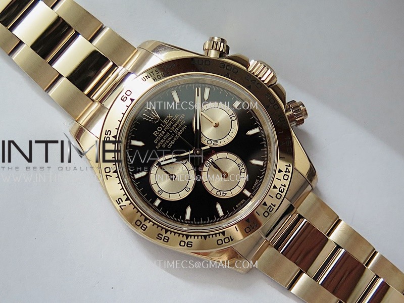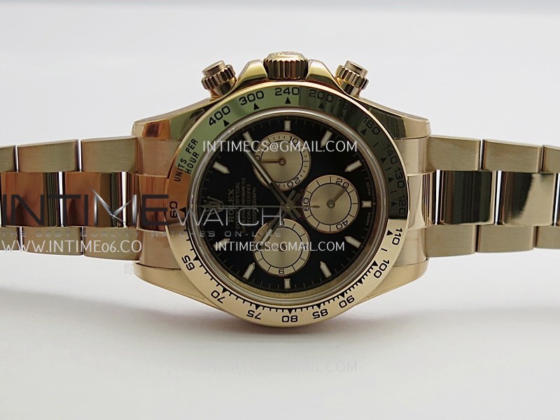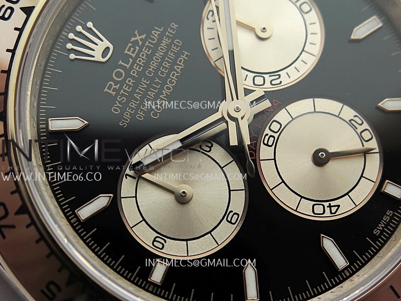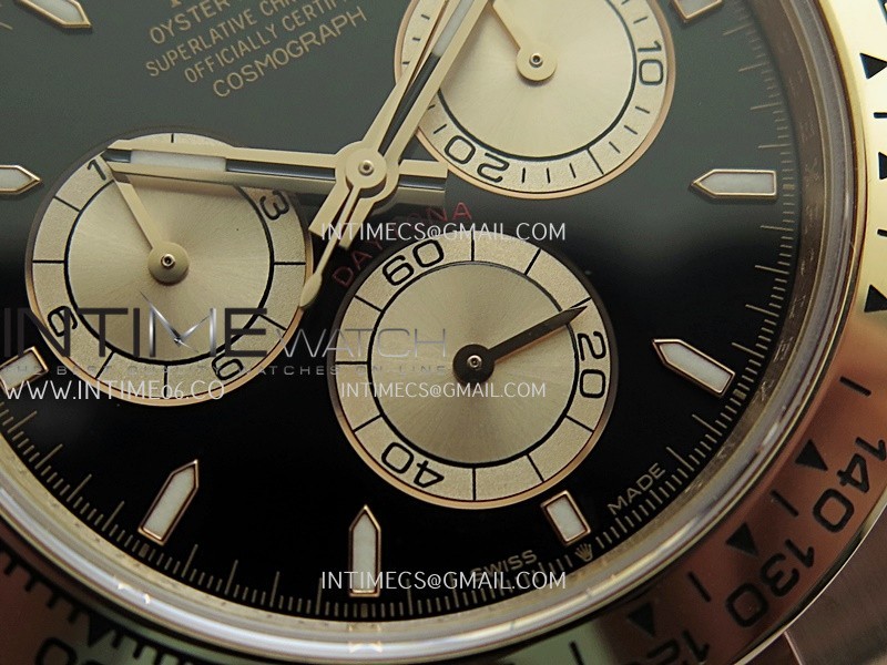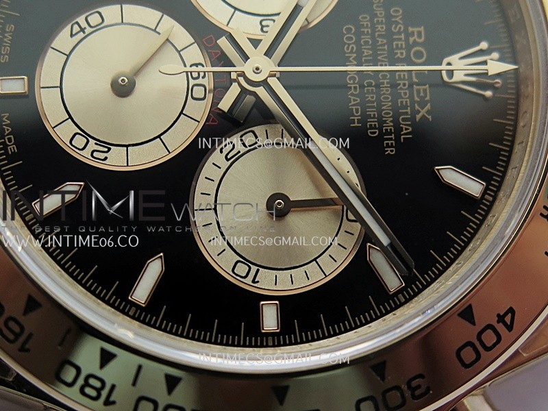 Case 18K rose gold plated 904L stainless steel case and Cu-W metal to increase watch weight to match the genuine gold watch weight, almost same weight as genuine watch