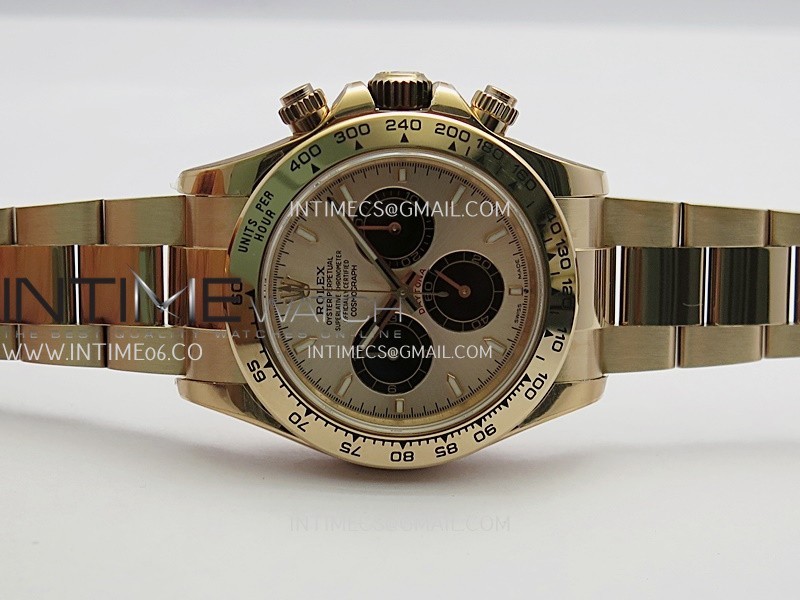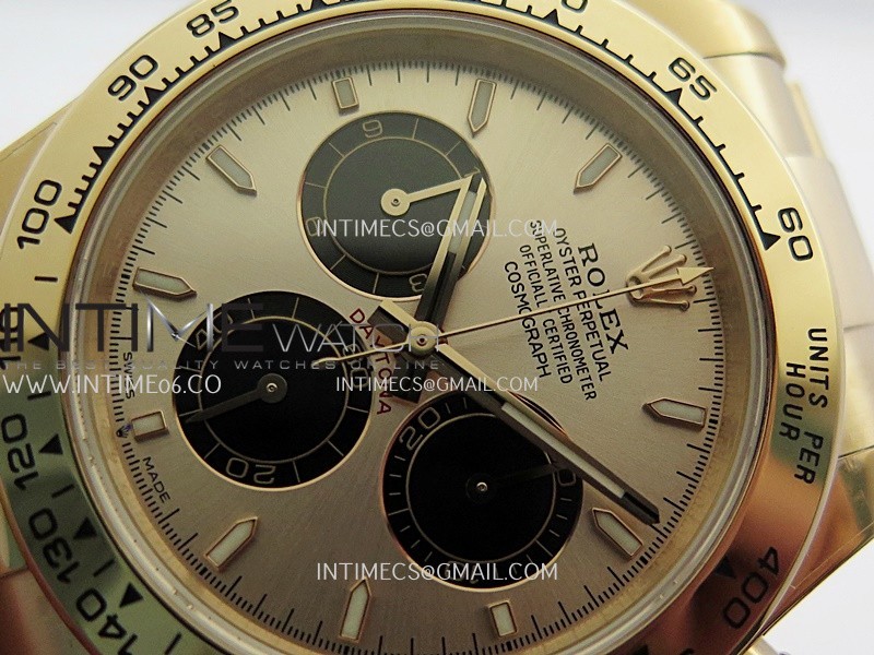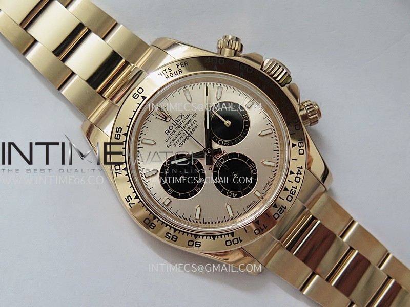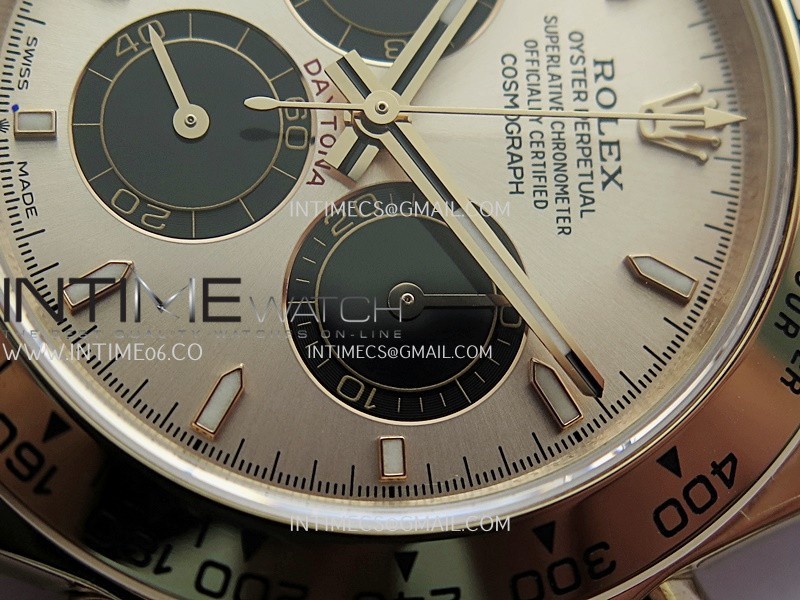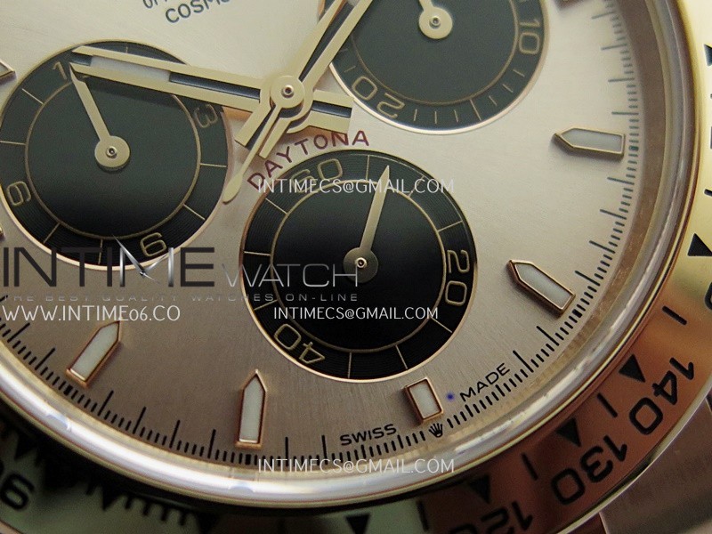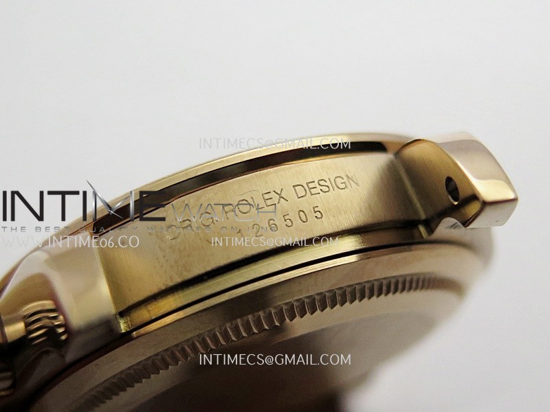 Case 18K rose gold plated 904L stainless steel case and Cu-W metal to increase watch weight to match the genuine gold watch weight, almost same weight as genuine watch