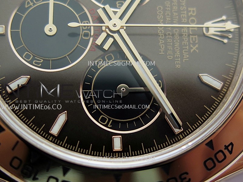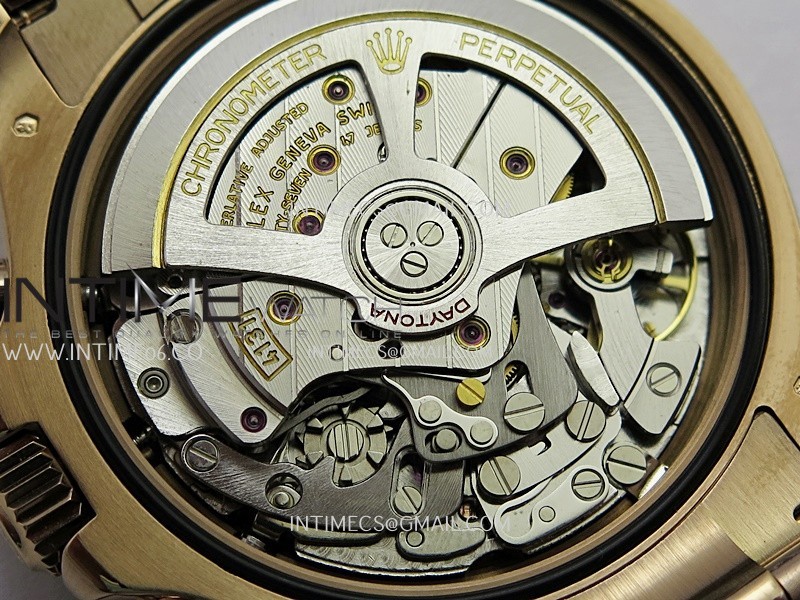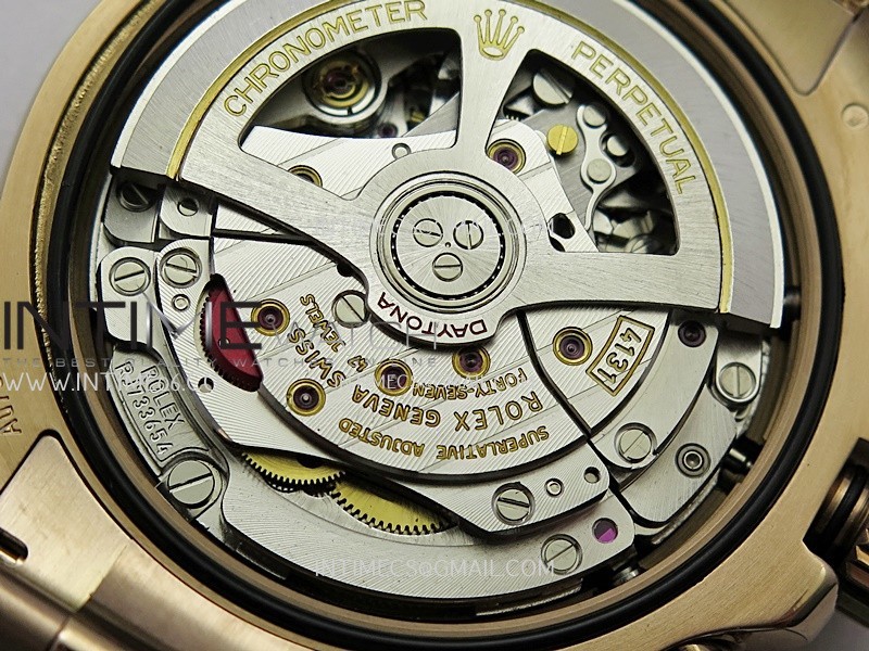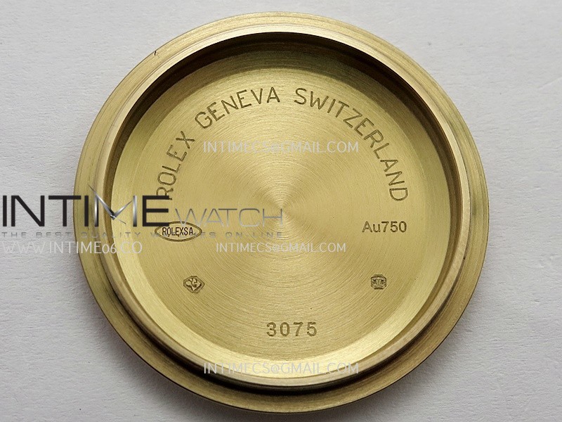 Case 18K rose gold plated 904L stainless steel case and Cu-W metal to increase watch weight to match the genuine gold watch weight, almost same weight as genuine watch