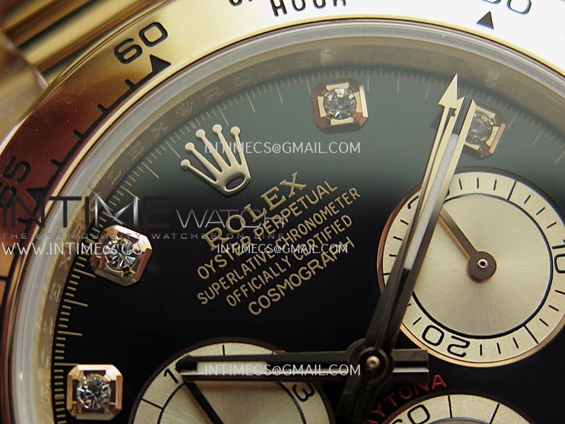 Crystal Scratch-proof sapphire crystal with semi-invisible crown etched at 6:00 position of the crystal (same as genuine and this is the first of its kind, one revolutionary breakthrough of the Rolex replicas)
