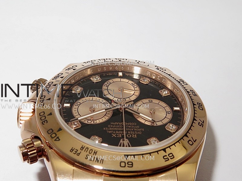 Bezel 18K rose gold plated 904L stainless steel Bezel and Cu-W metal to increase watch weight