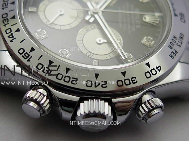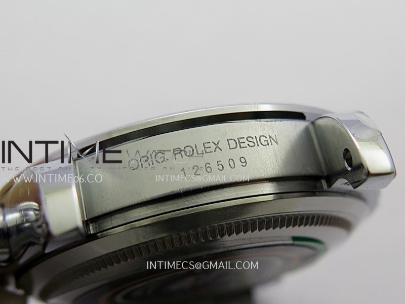 Crystal Scratch-proof sapphire crystal with semi-invisible crown etched at 6:00 position of the crystal (same as genuine and this is the first of its kind, one revolutionary breakthrough of the Rolex replicas)