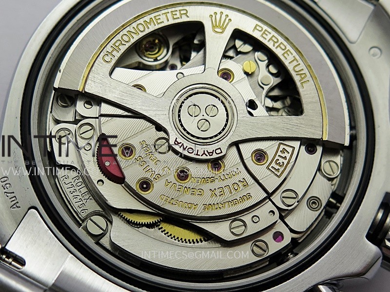 Movement Free Sprung Balance Wheel Shanghai Super Clone UFO.F4131 Slim Chronograph Automatic with Fully Functional Chronograph and decorated Rotor & Bridges/Plates like Rolex Genuine Calibre 4131 for Daytona Chronograph, 72 Hours power reserve.