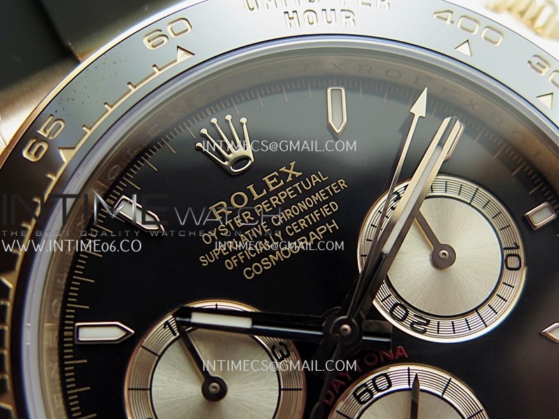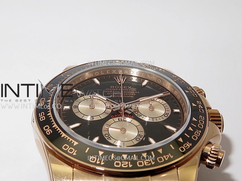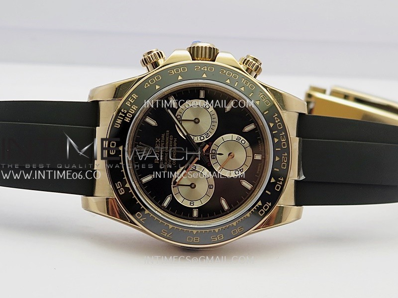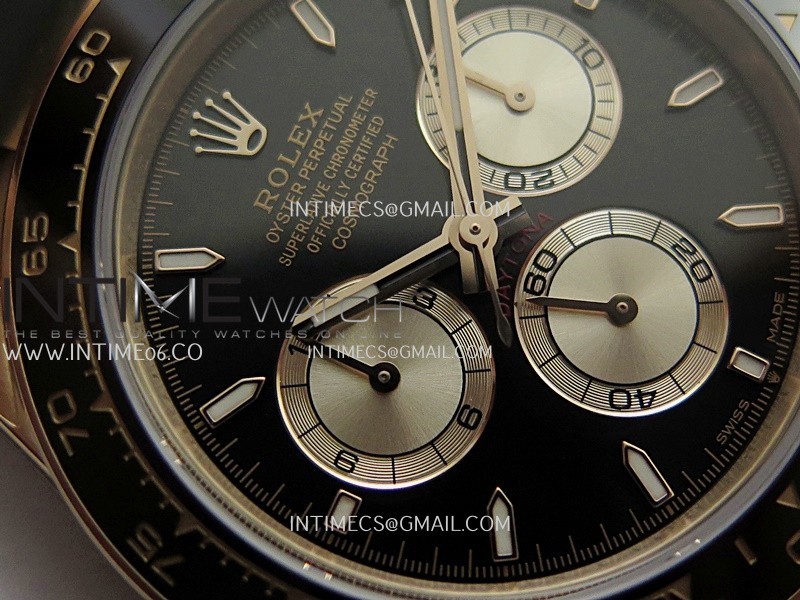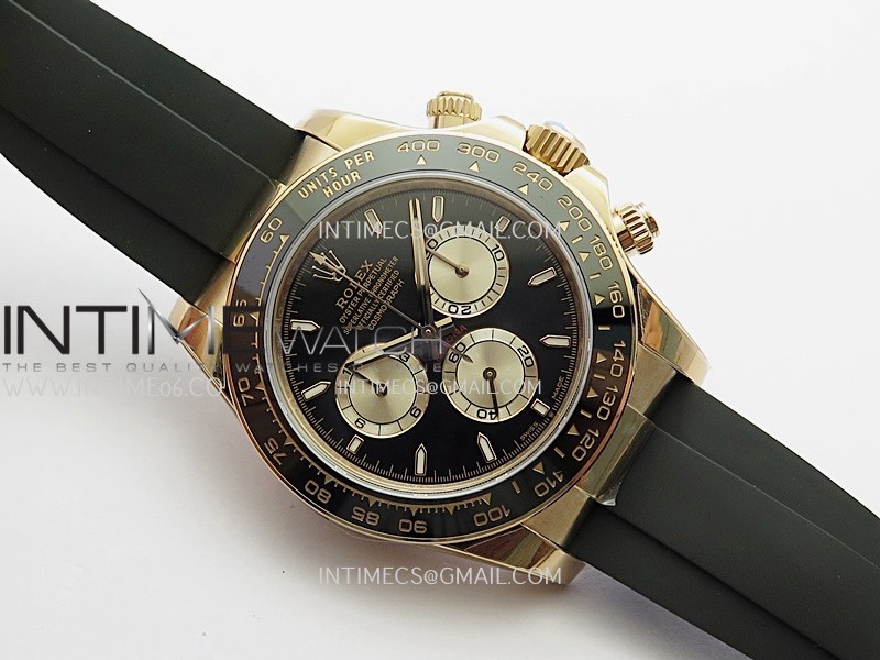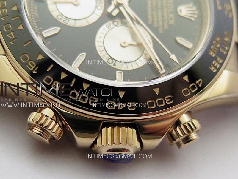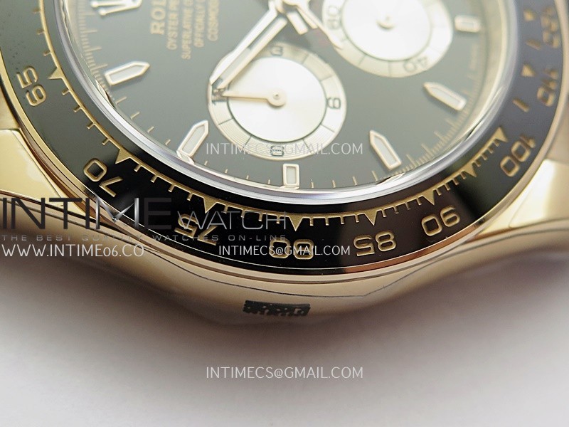 Bezel Black ceramic tachymeter bezel, real gold plated correct markers, same shape and depth as genuine bezel