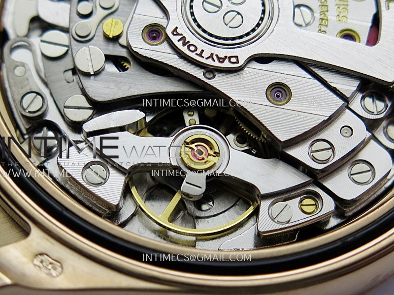 Case 1:1 replicated 18K rose gold plated solid 904L stainless steel case and Cu-W metal to increase watch weight to match the genuine gold watch weight, almost same weight as genuine watch