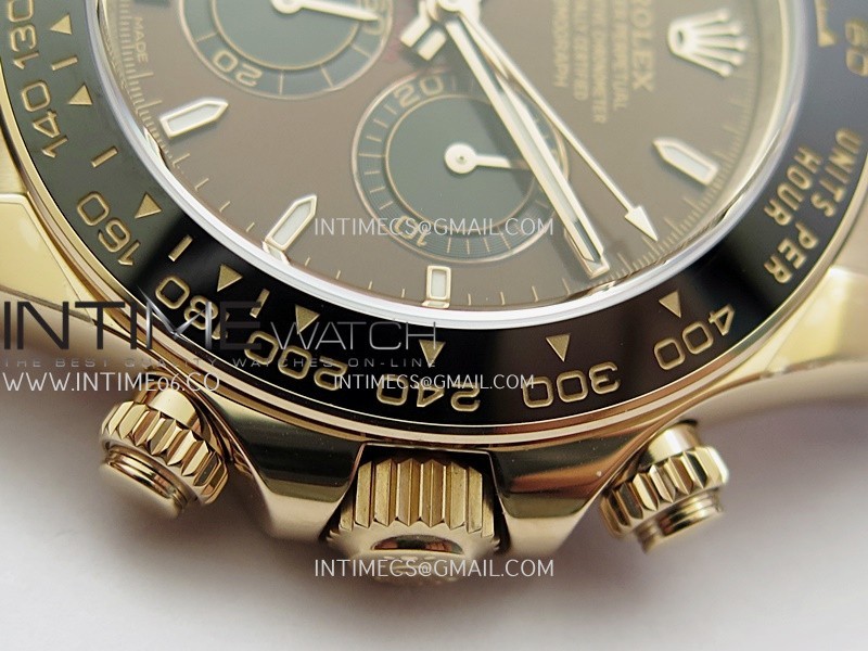 Bezel Black ceramic tachymeter bezel, real gold plated correct markers, same shape and depth as genuine bezel