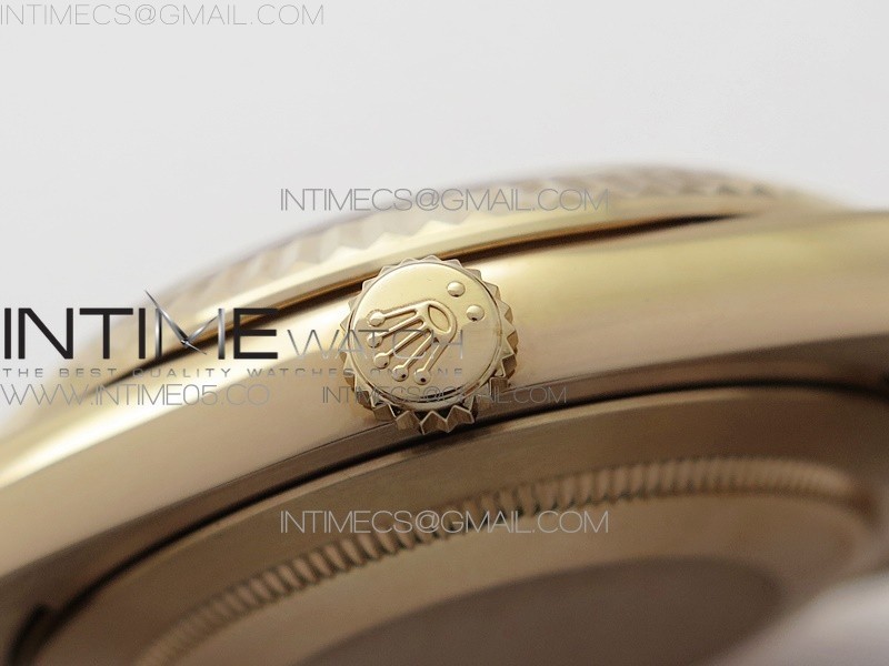 Case 18K Rose Gold Plated Solid 904L stainless steel, screw-in back and crown, deep and double line engraved rehaut, brighter and more accurate engravings, random serial number engraved at 6:00 of the rehaut. Different random serials