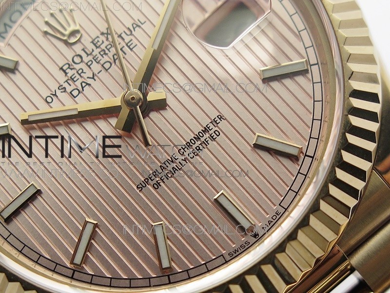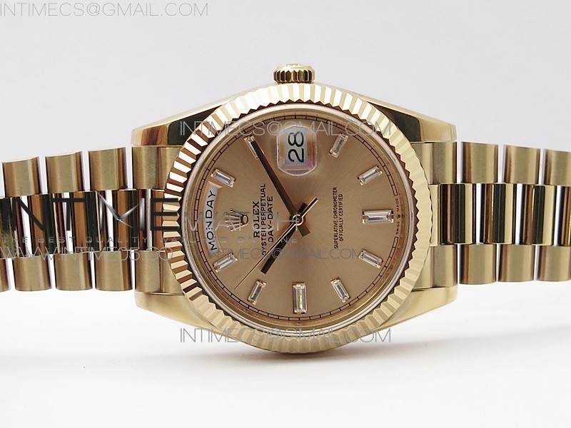 Case 18K Rose Gold Plated Solid 904L stainless steel, screw-in back and crown, deep and double line engraved rehaut, brighter and more accurate engravings, random serial number engraved at 6:00 of the rehaut. Different random serials